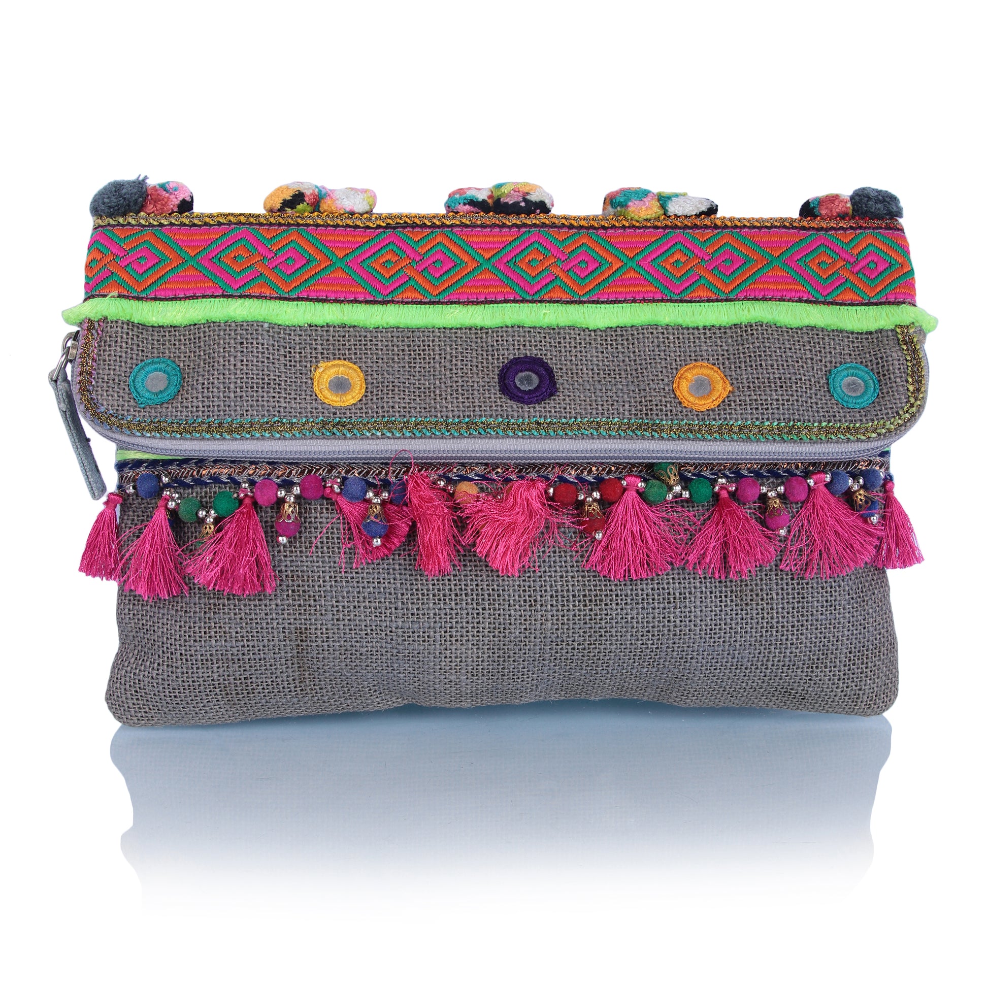 Embroidered bohemian clutch with zipper. Use it as a clutch or a wallet.