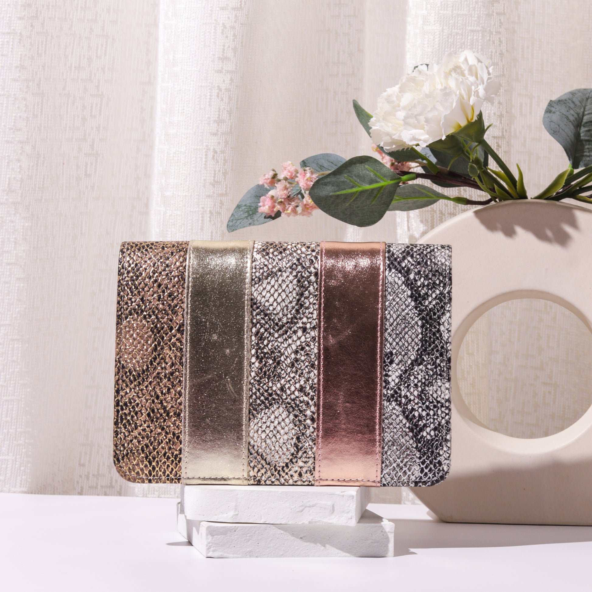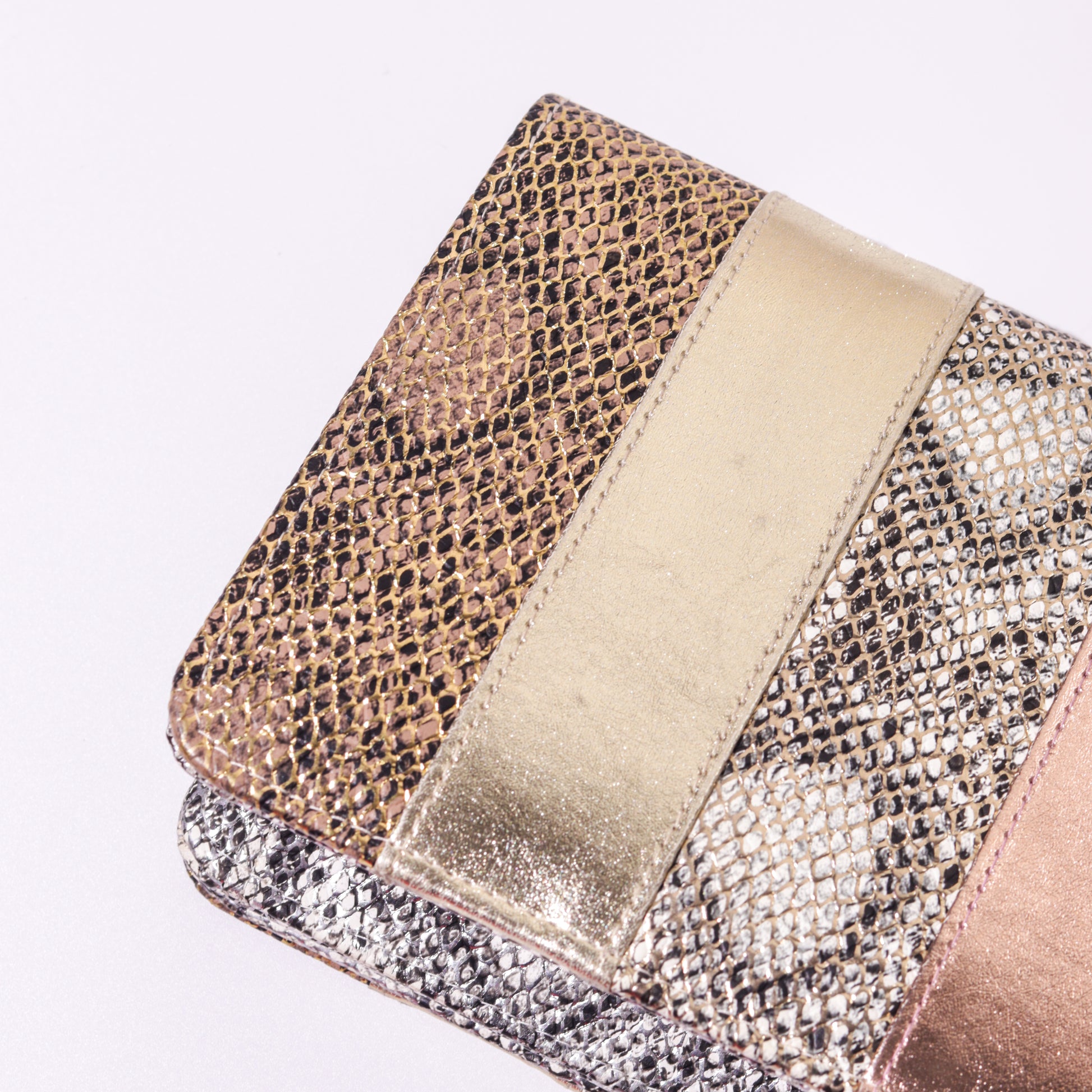 Patch work clutch bag with a detachable sling, which when paired with your outfit completes it.