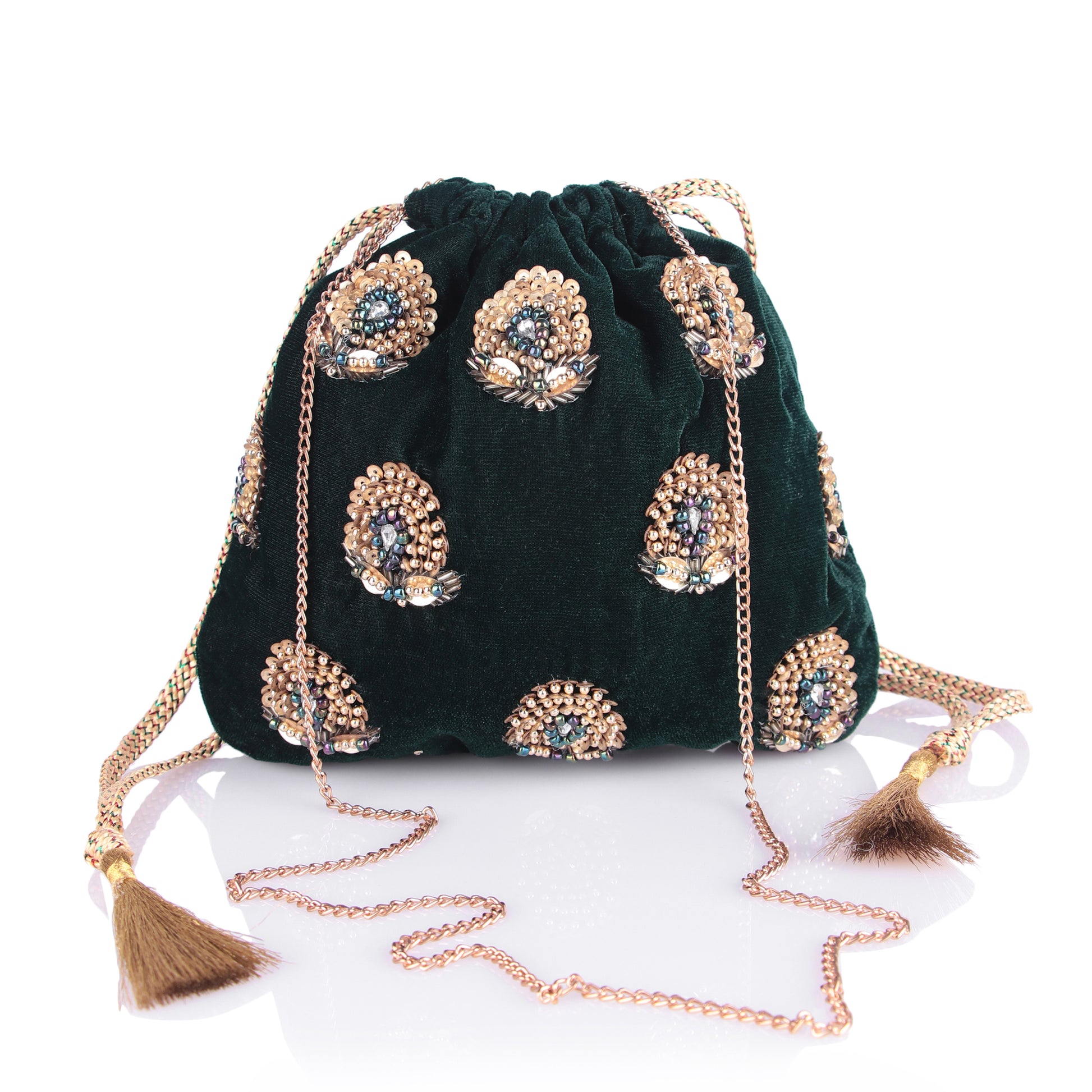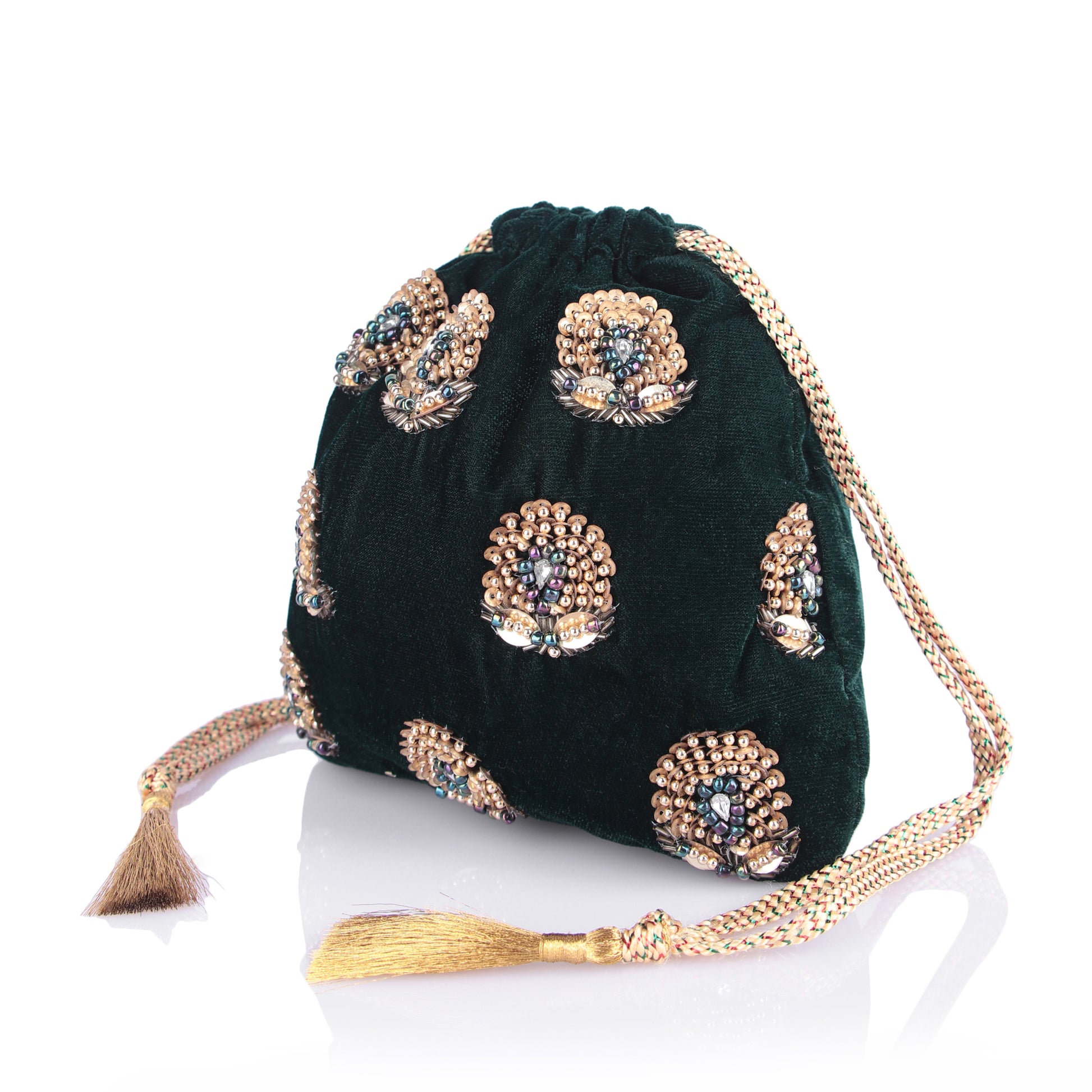 Dark green velvet potli bag