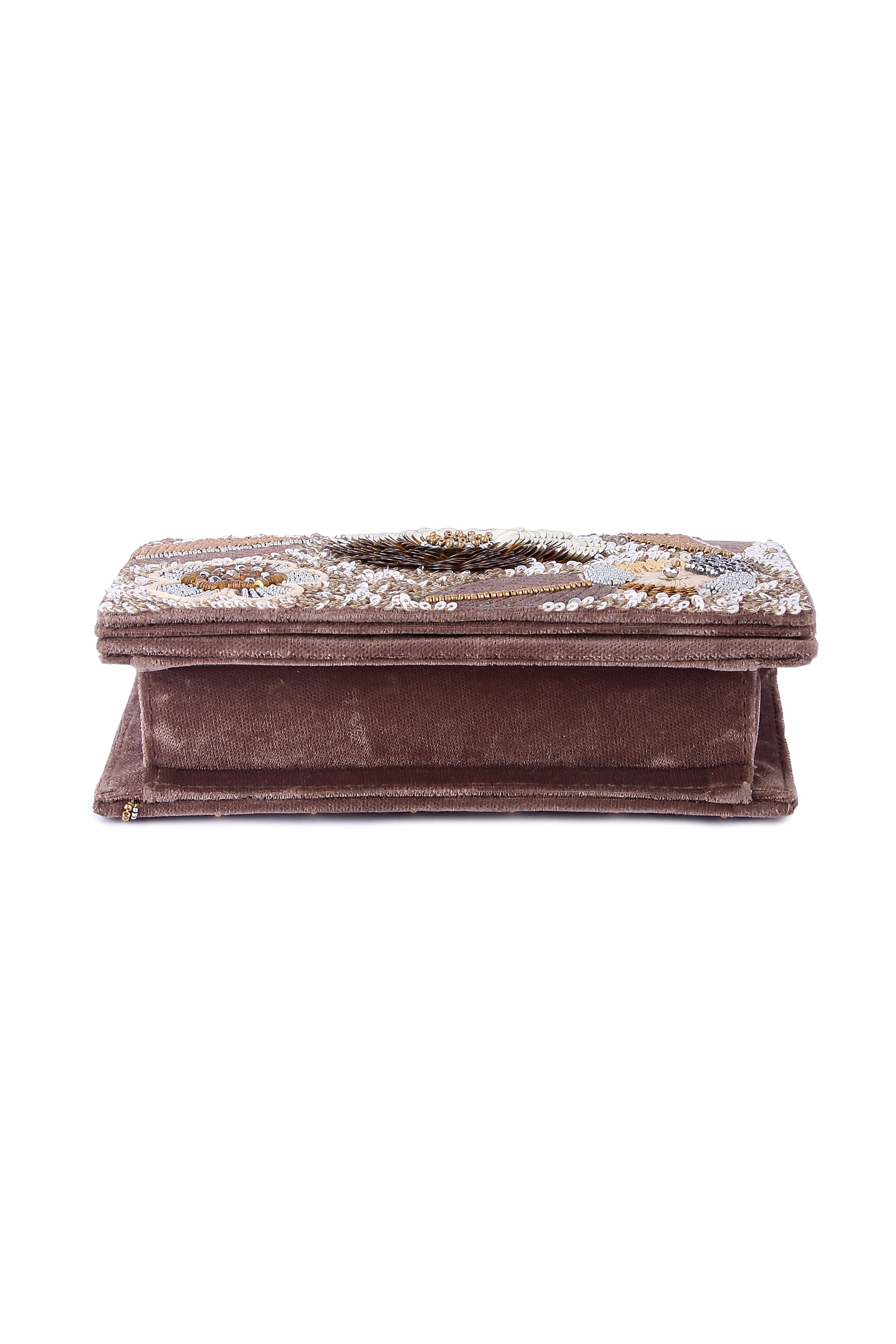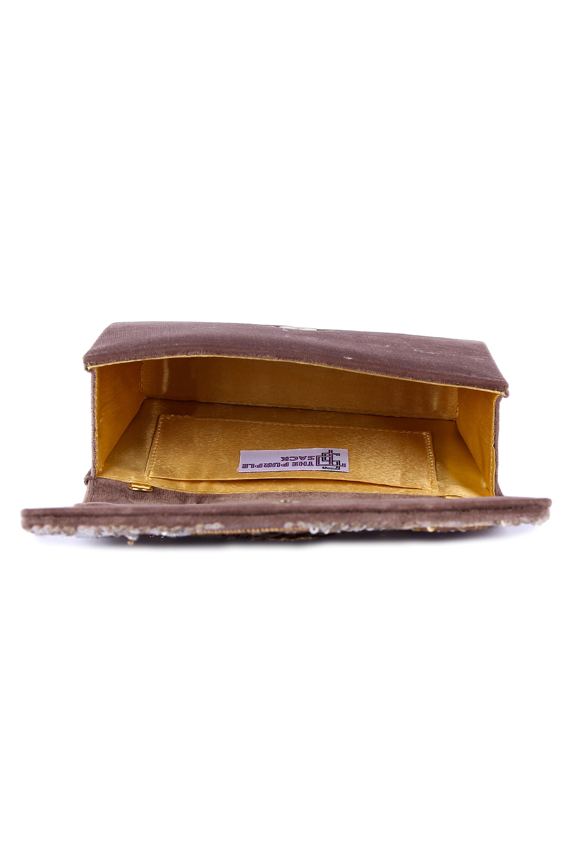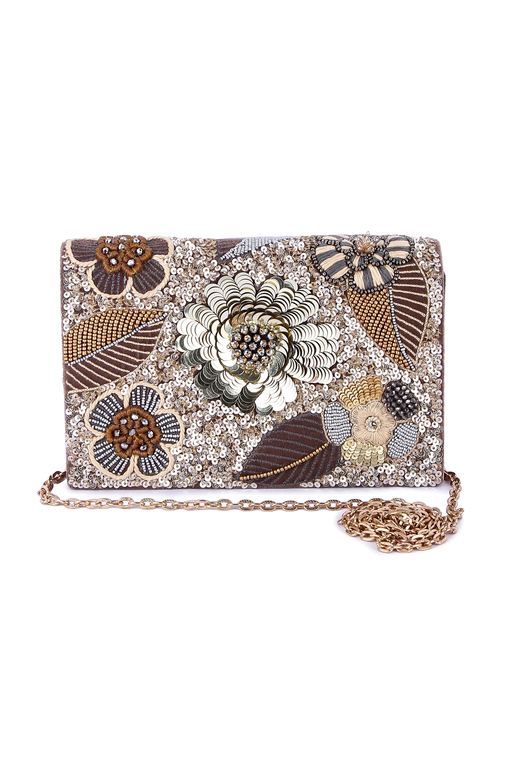 Hand embroidered clutch bag with a detachable sling, which when paired with your outfit completes it.