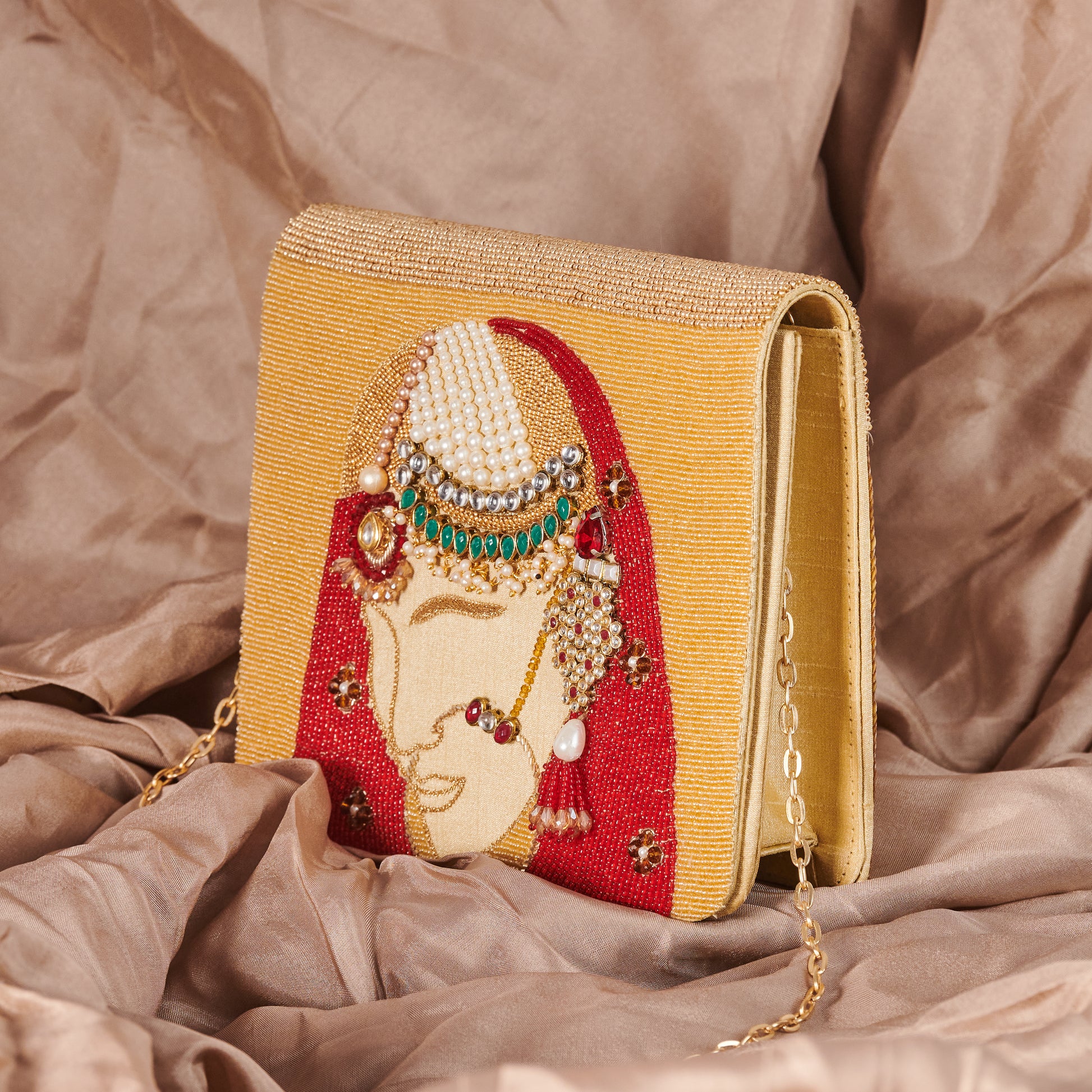 Hand embroidered and hand embellished bag with sling chain. A one of a kind accessory, that will add glam to your outfit. Color - Multicolour