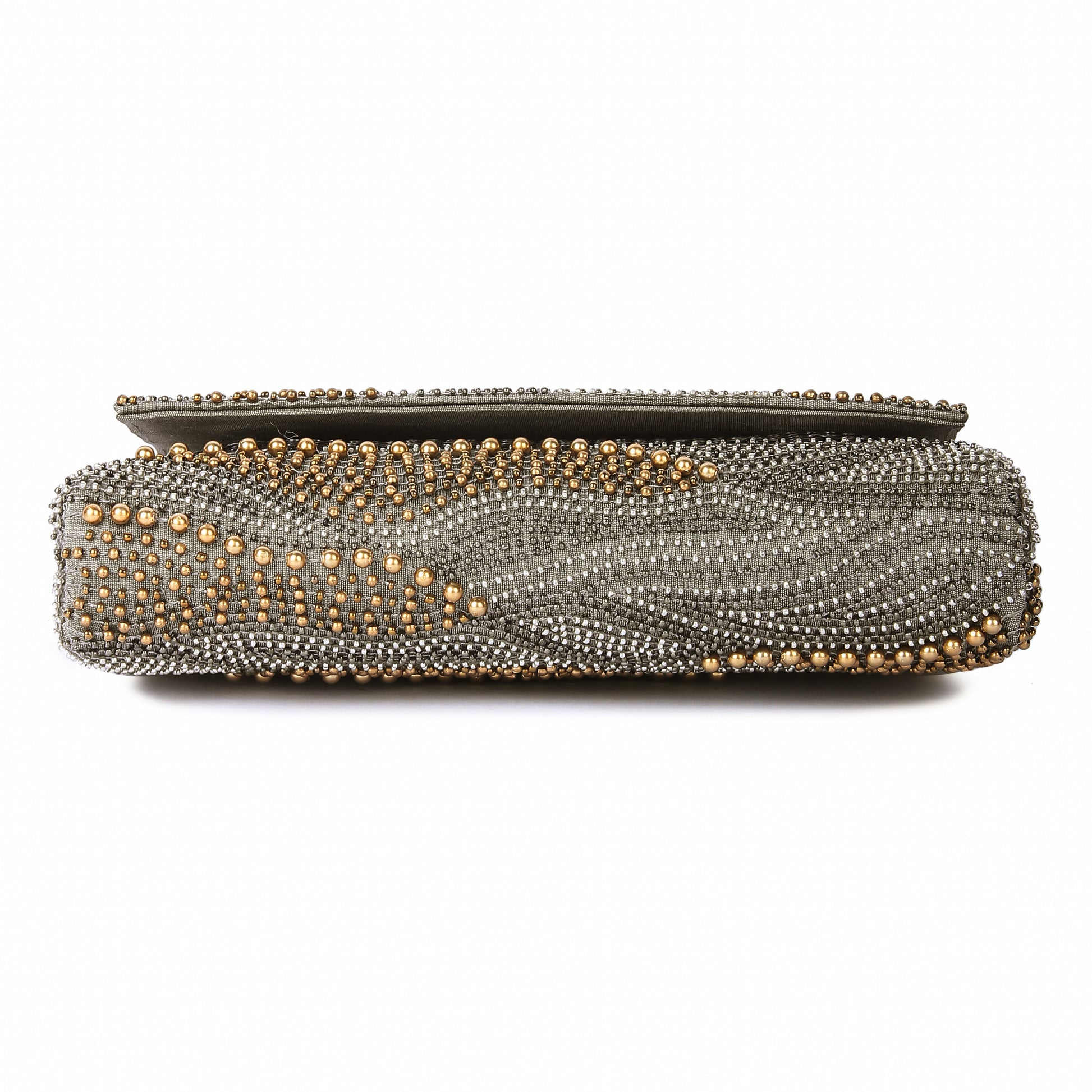 Hand embroidered exquisite clutch with sling. Clutch it or sling it. Color - Grey