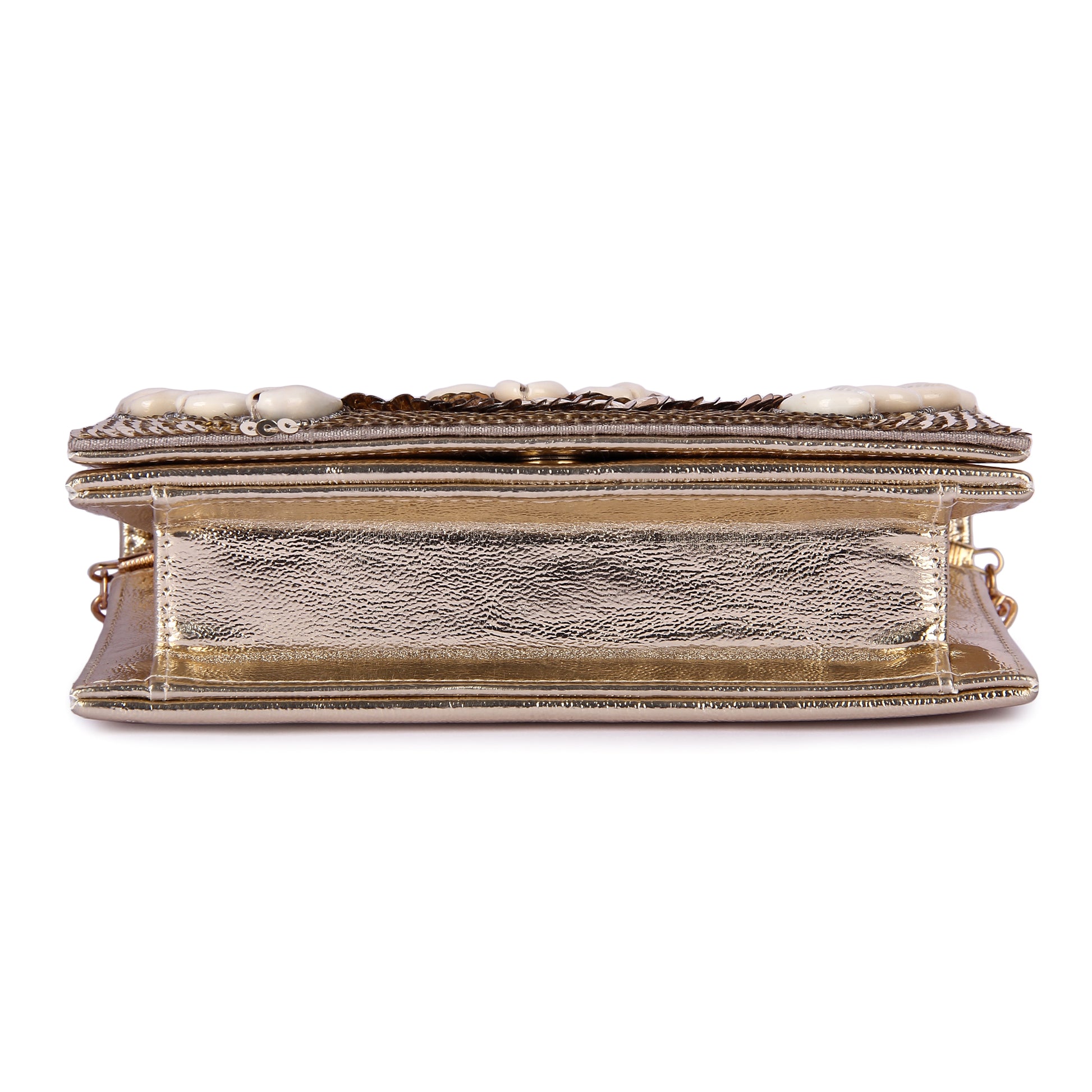 This clutch bag has an exuberant design and comes with a detachable sling chain. Carry it with the chain or simply clutch it. Color - Multicolour