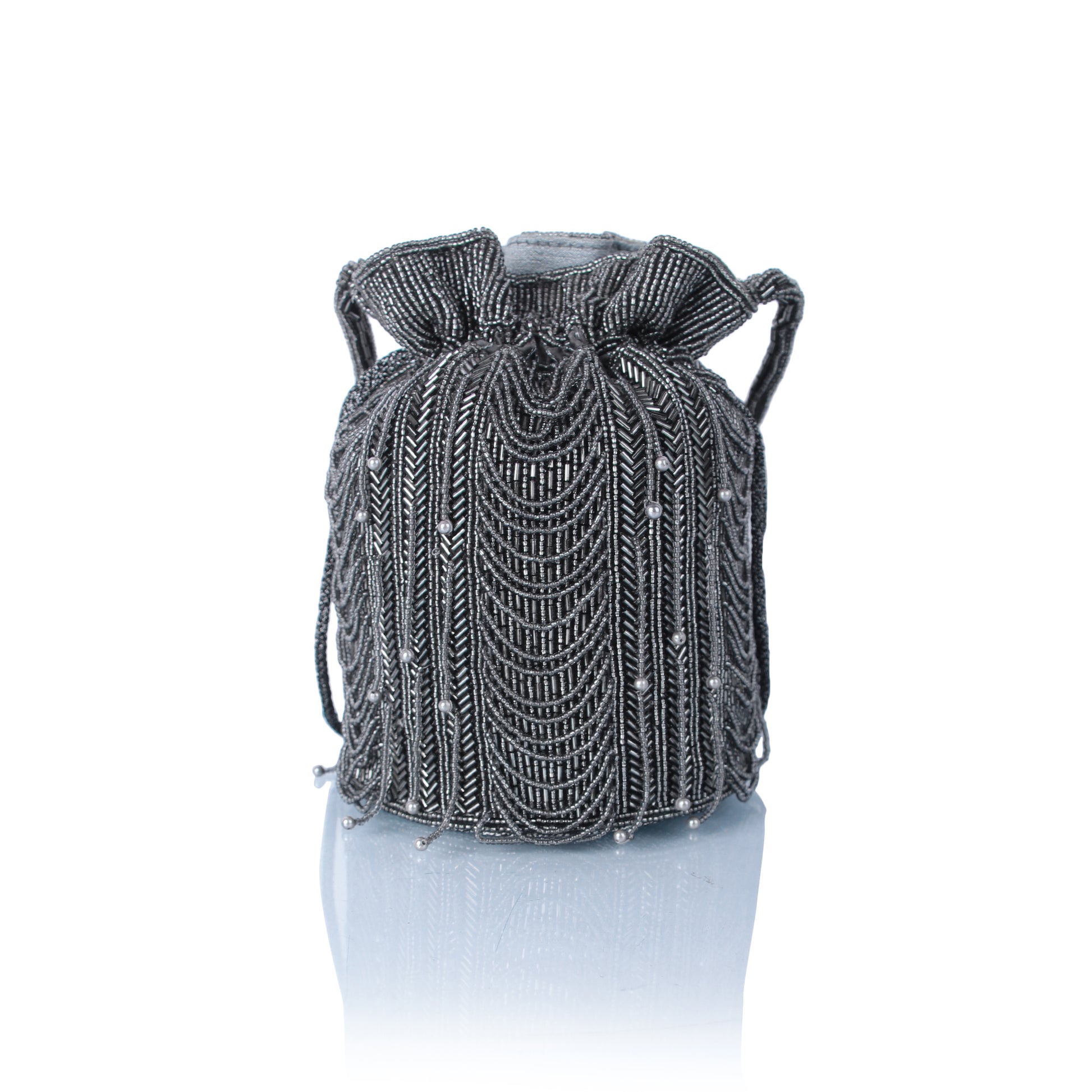Grey beaded mini potli bag