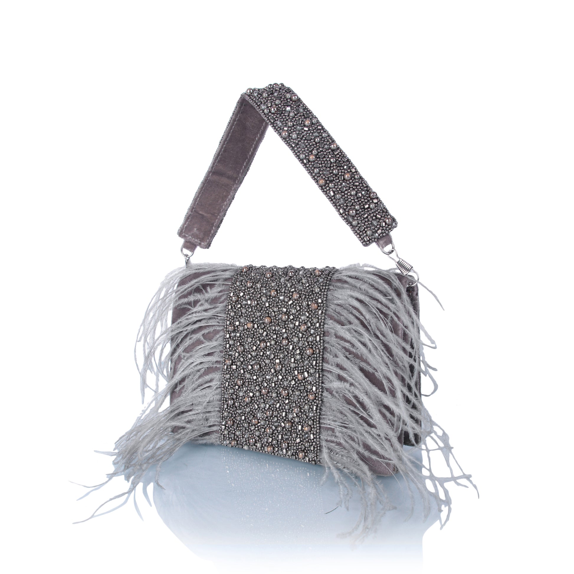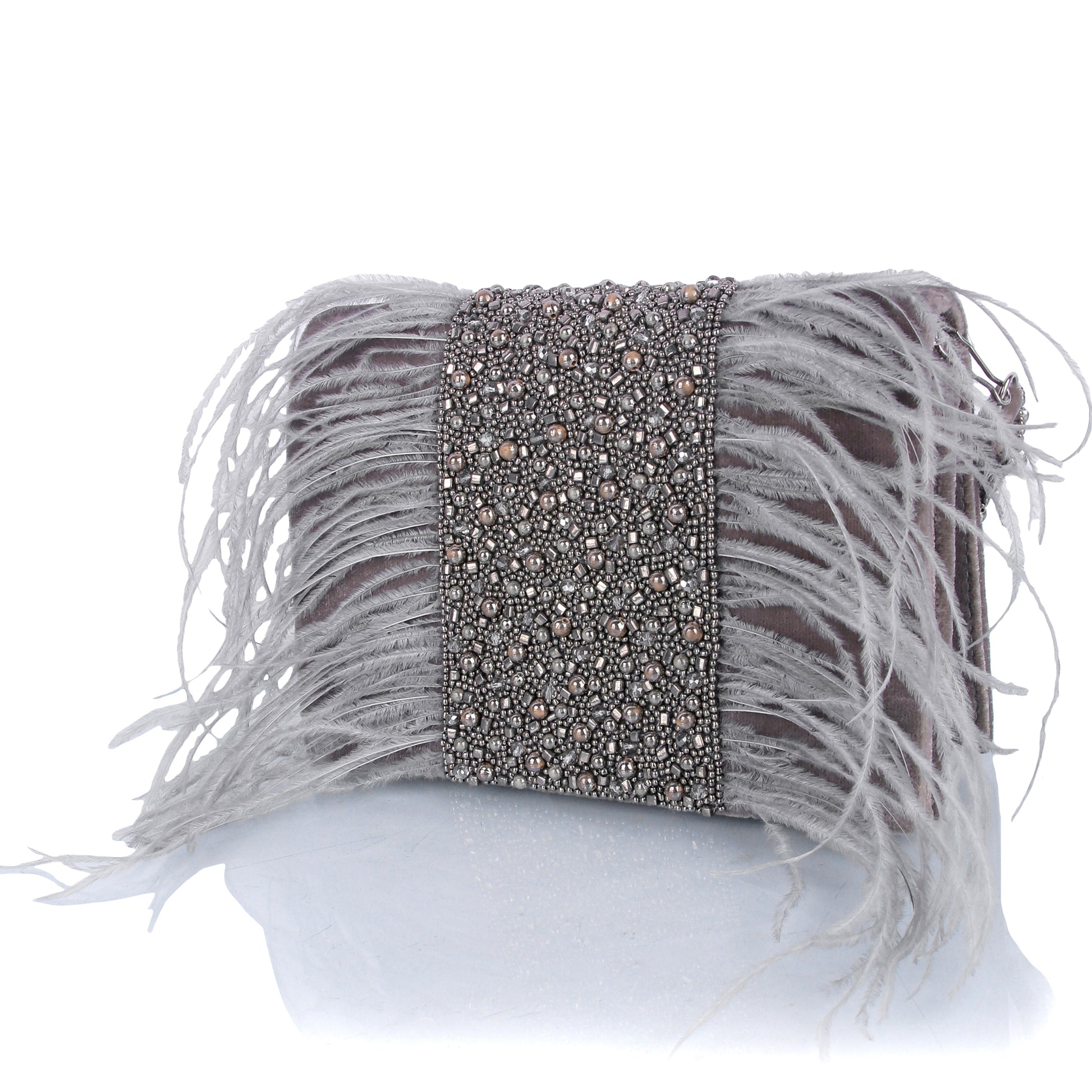 Grey feather clutch bag