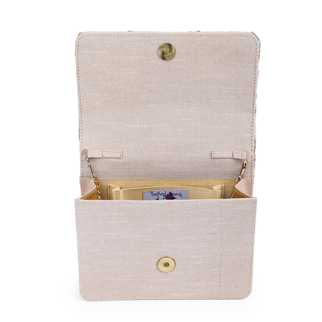 Hand embroidered exquisite clutch with sling. Clutch it or sling it. Color - Multicolour