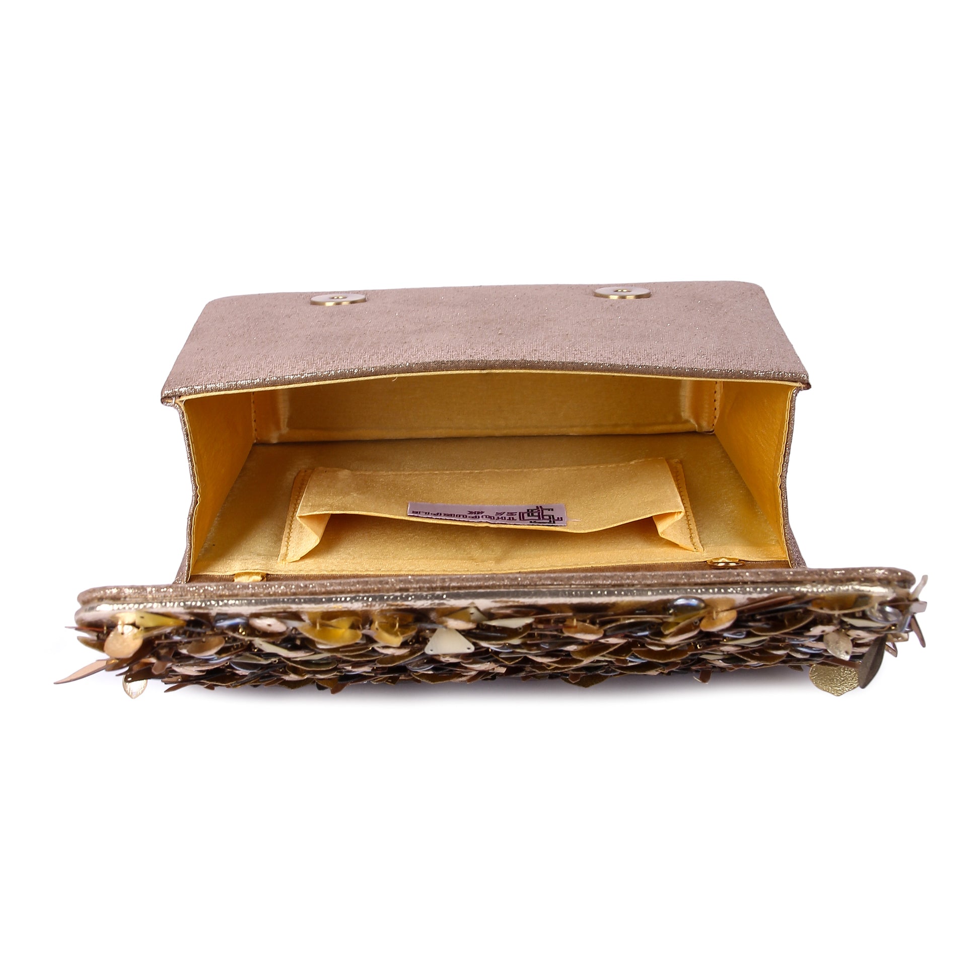 This clutch bag has an exuberant design and comes with a detachable sling chain. Carry it with the chain or simply clutch it. Color - Multicolour