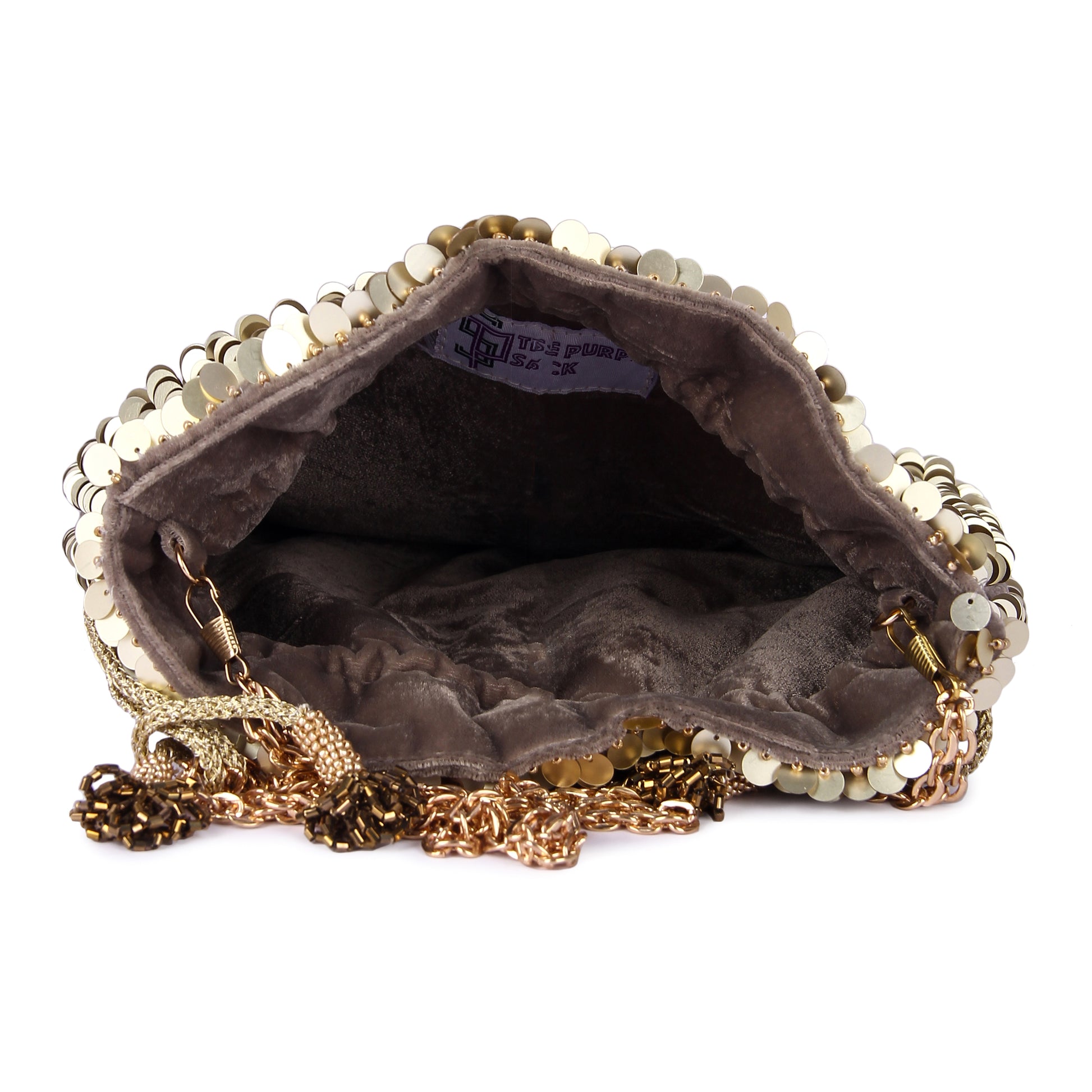 This clutch bag has an exuberant design and comes with a detachable sling chain. Carry it with the chain or simply clutch it. Color - Multicolour