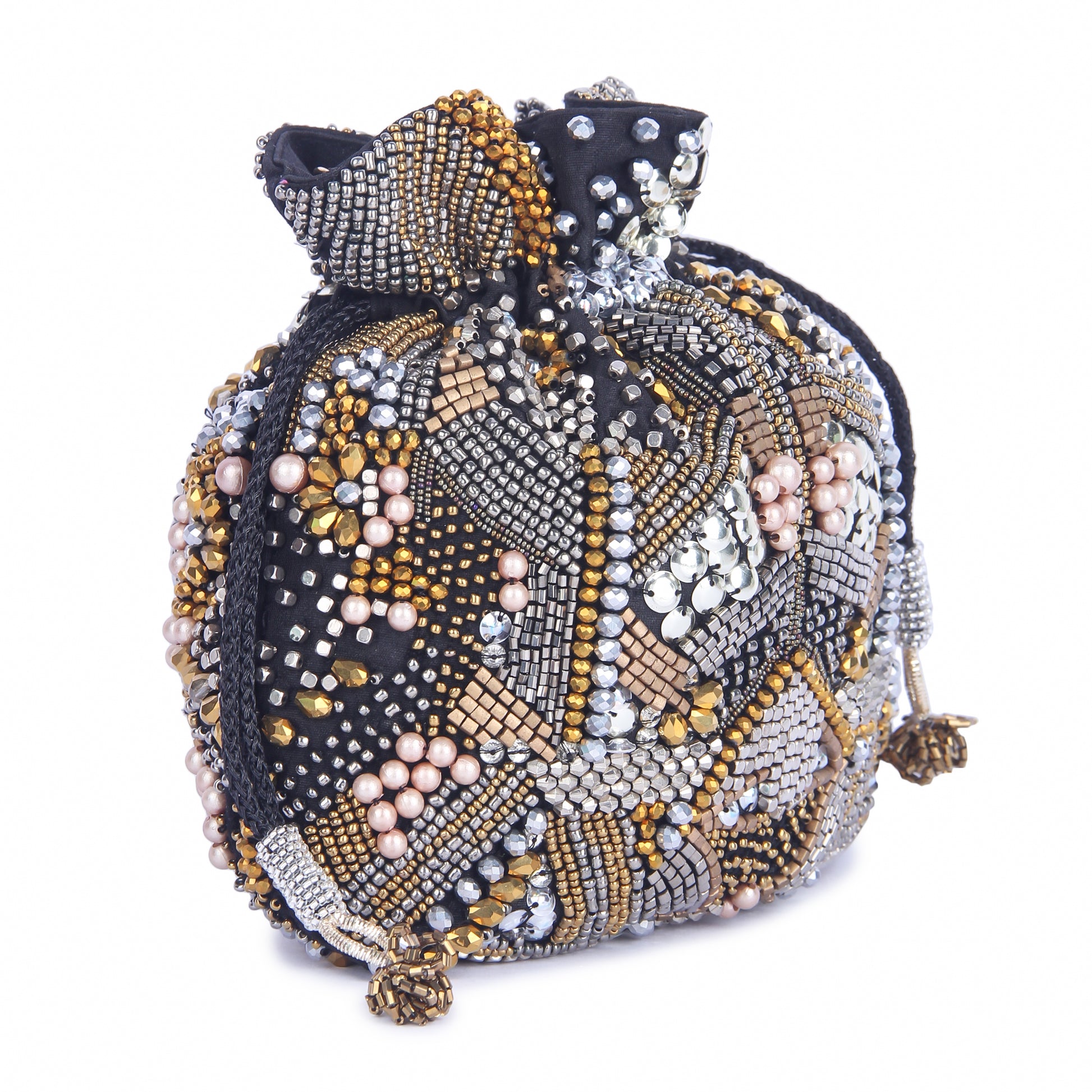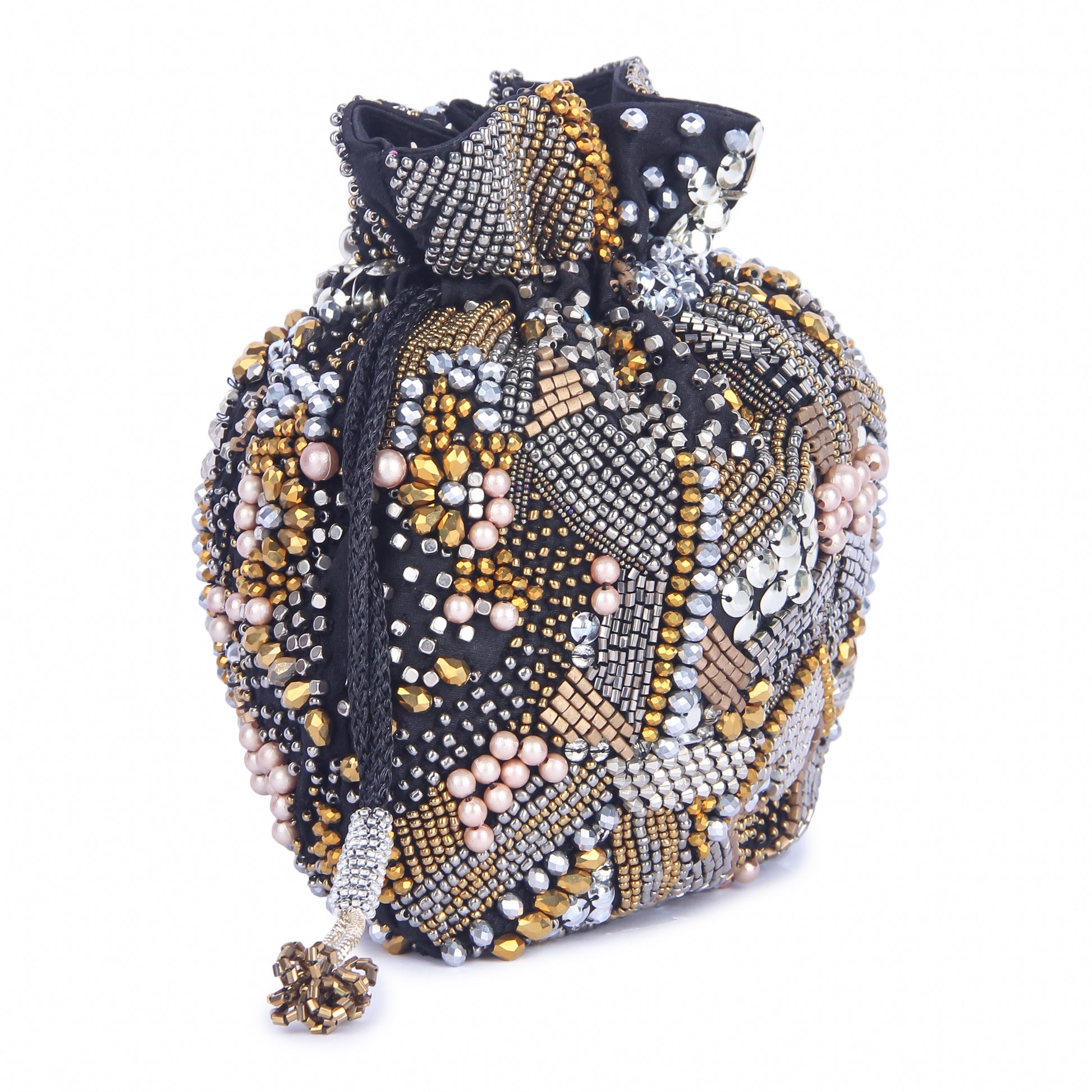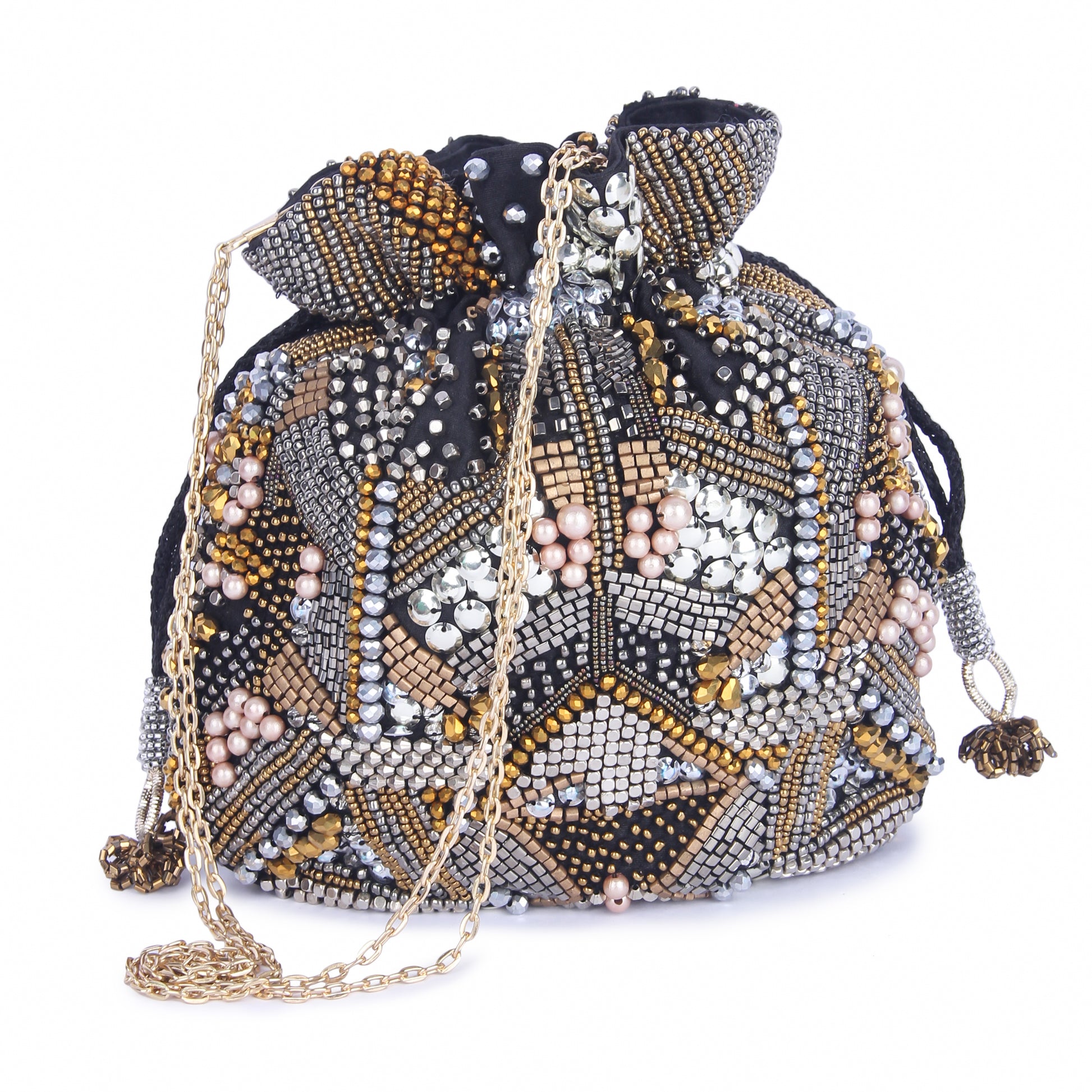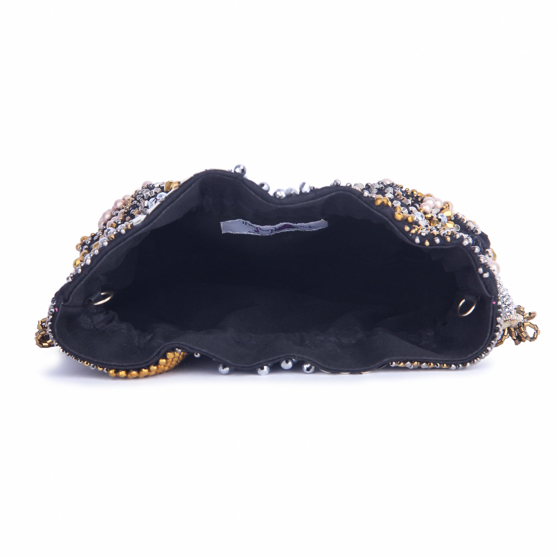 Hand embroidered and hand embellished bag with sling chain. A one of a kind accessory, that will add glam to your outfit. Color - Multicolour