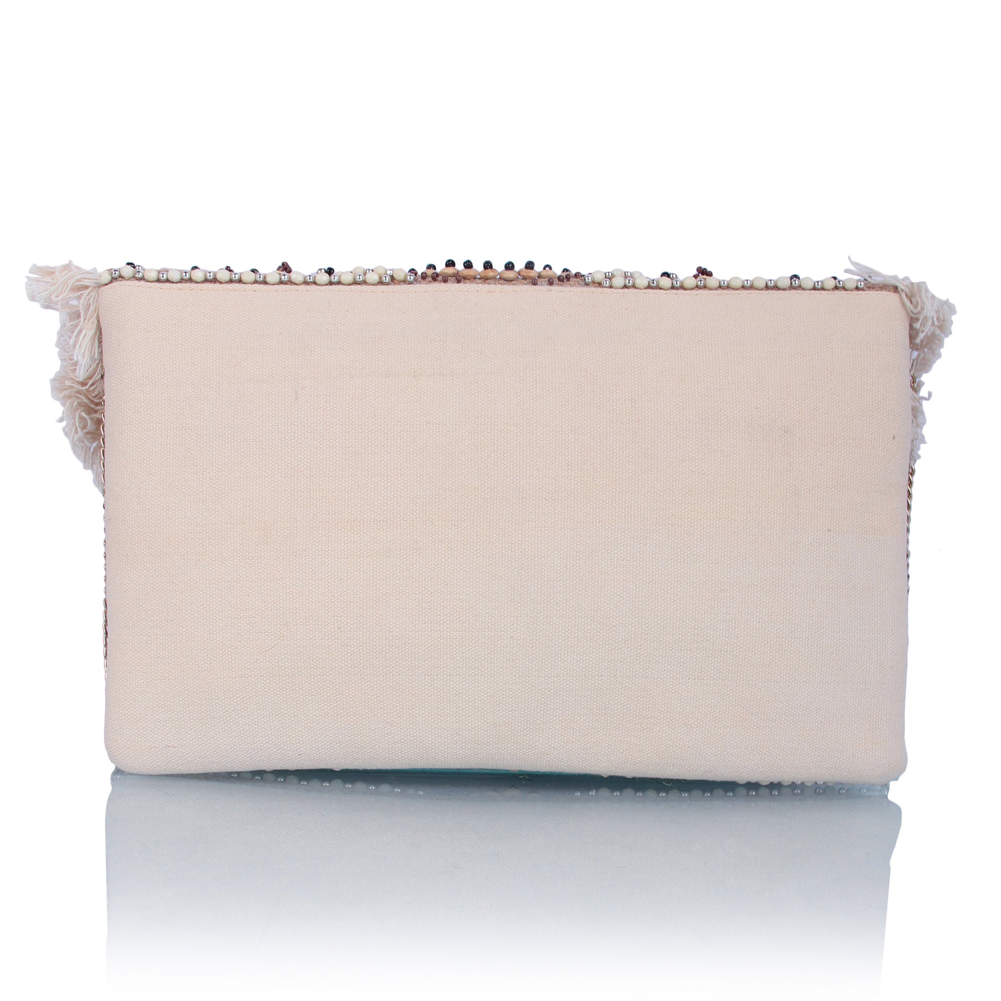 A neutral coloured beach bag, that looks great with any outfit. Clutch it or sling it.