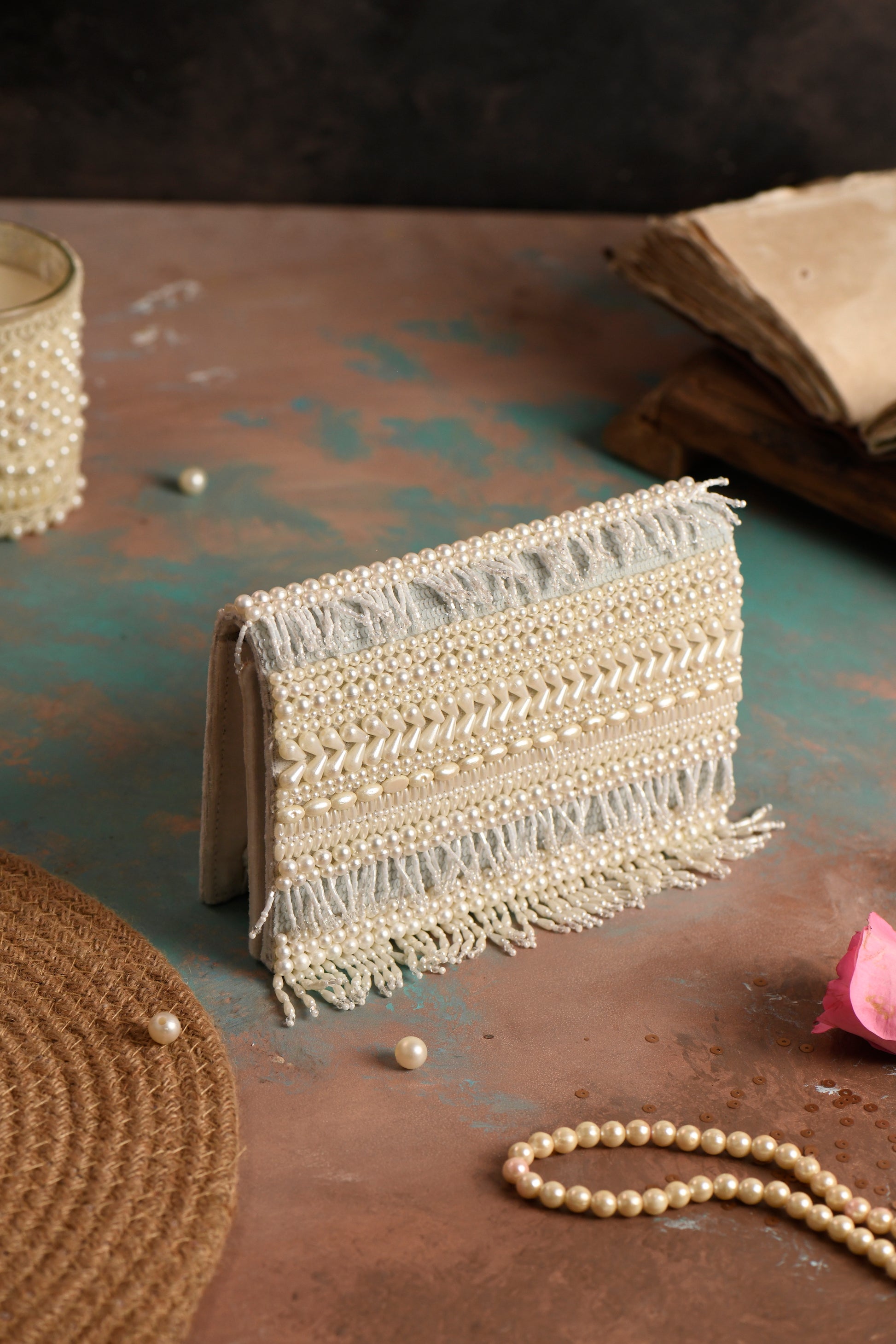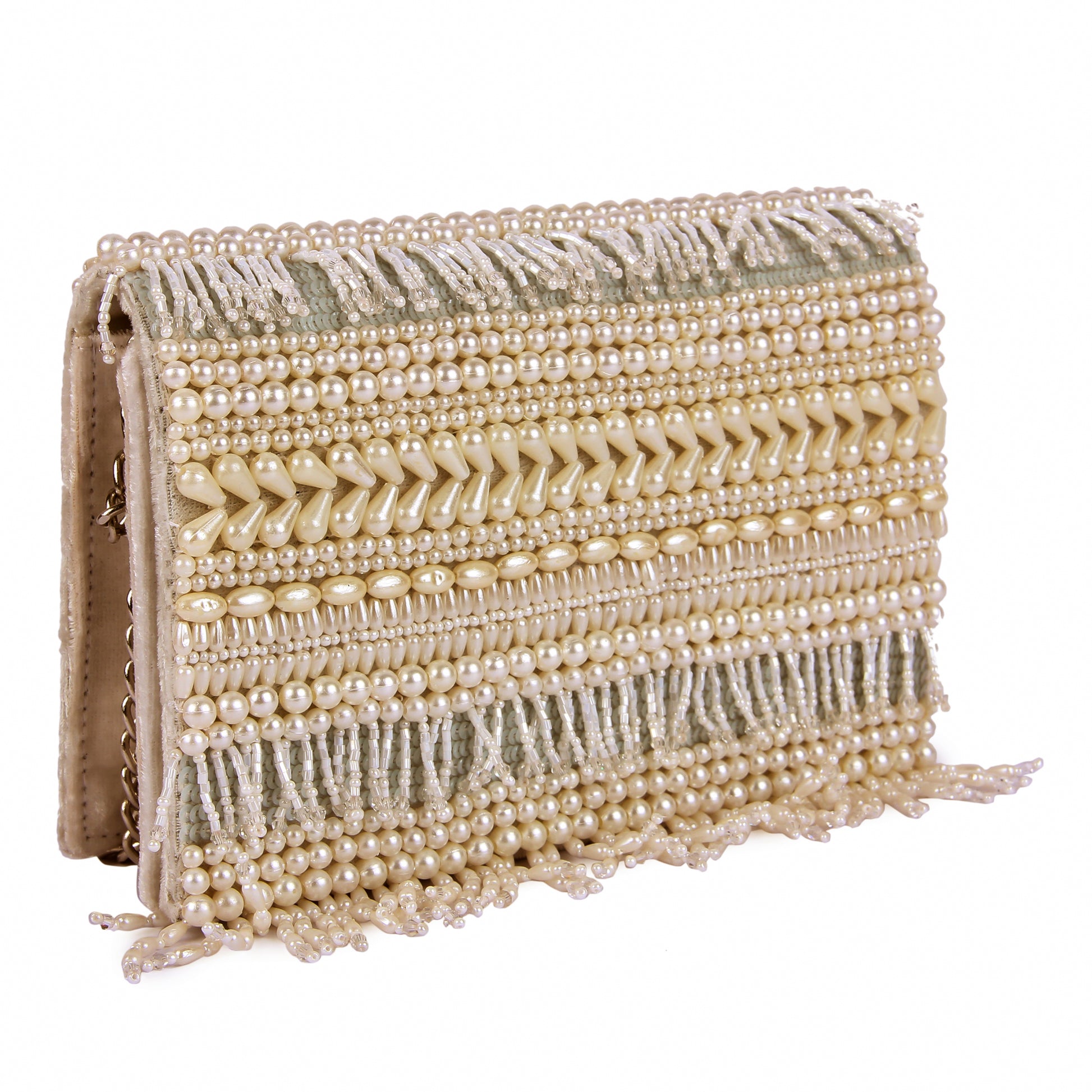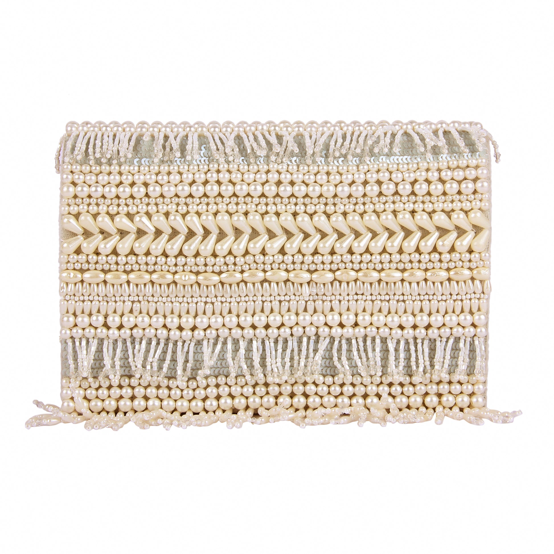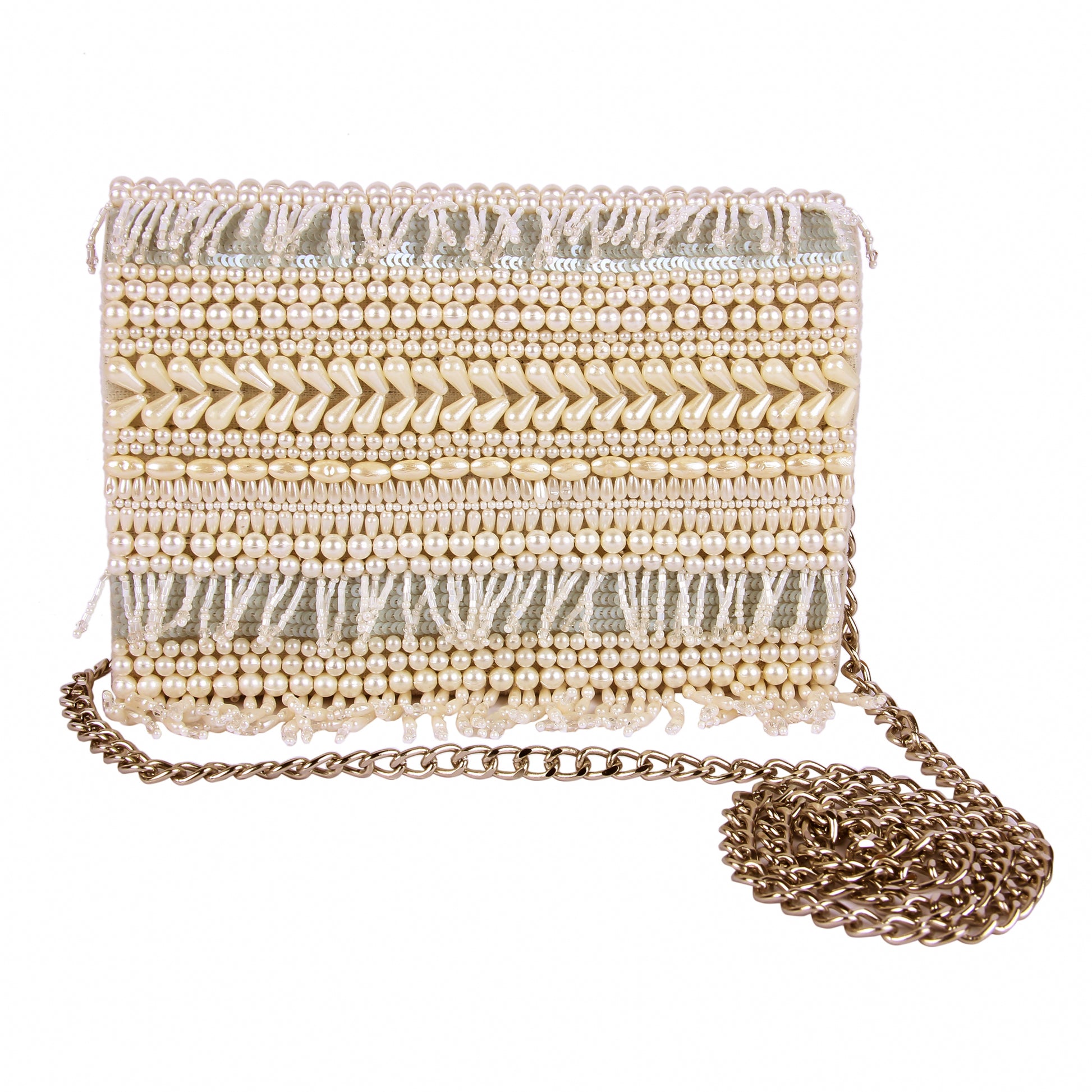 Hand embroidered exquisite clutch with sling. Clutch it or sling it. Color - White
