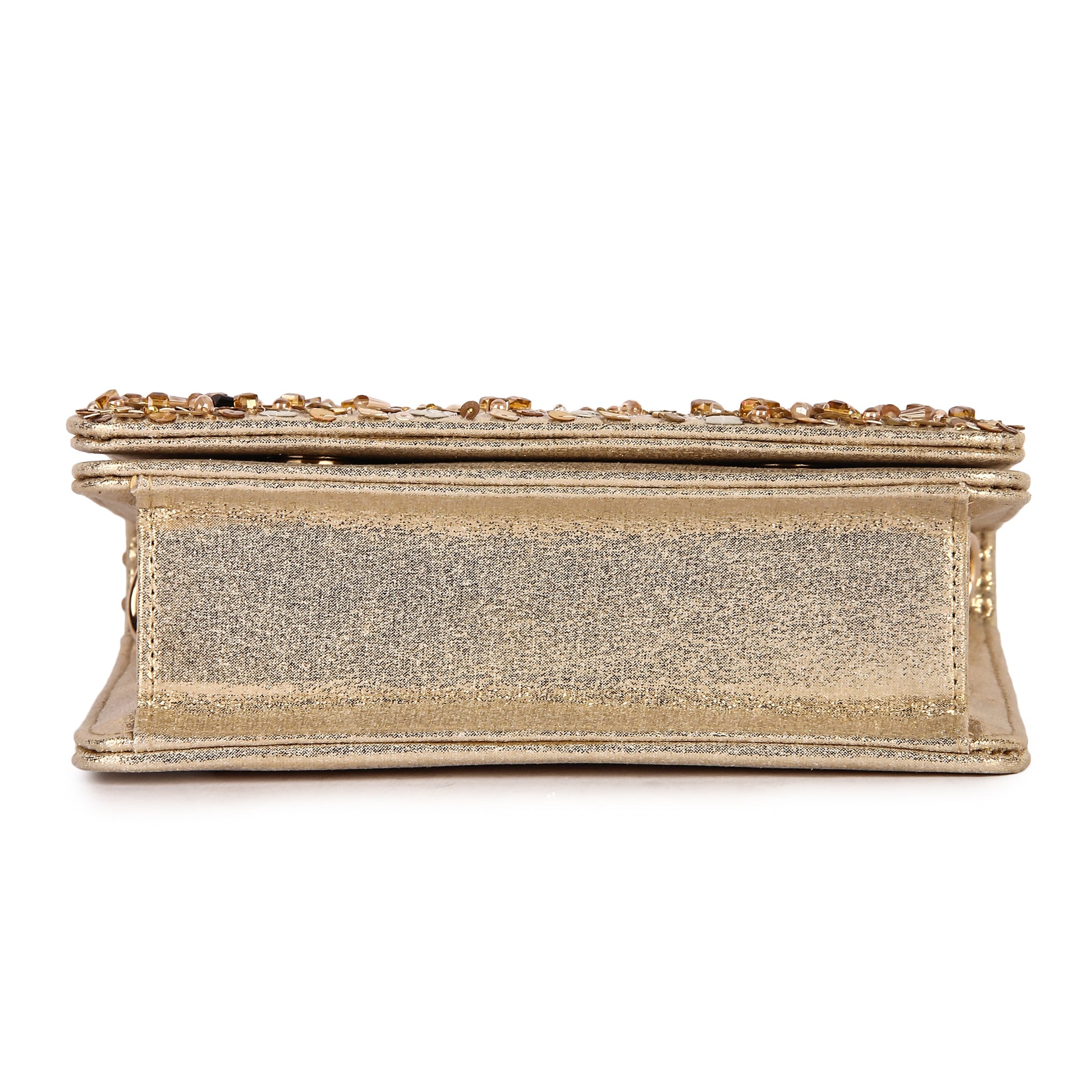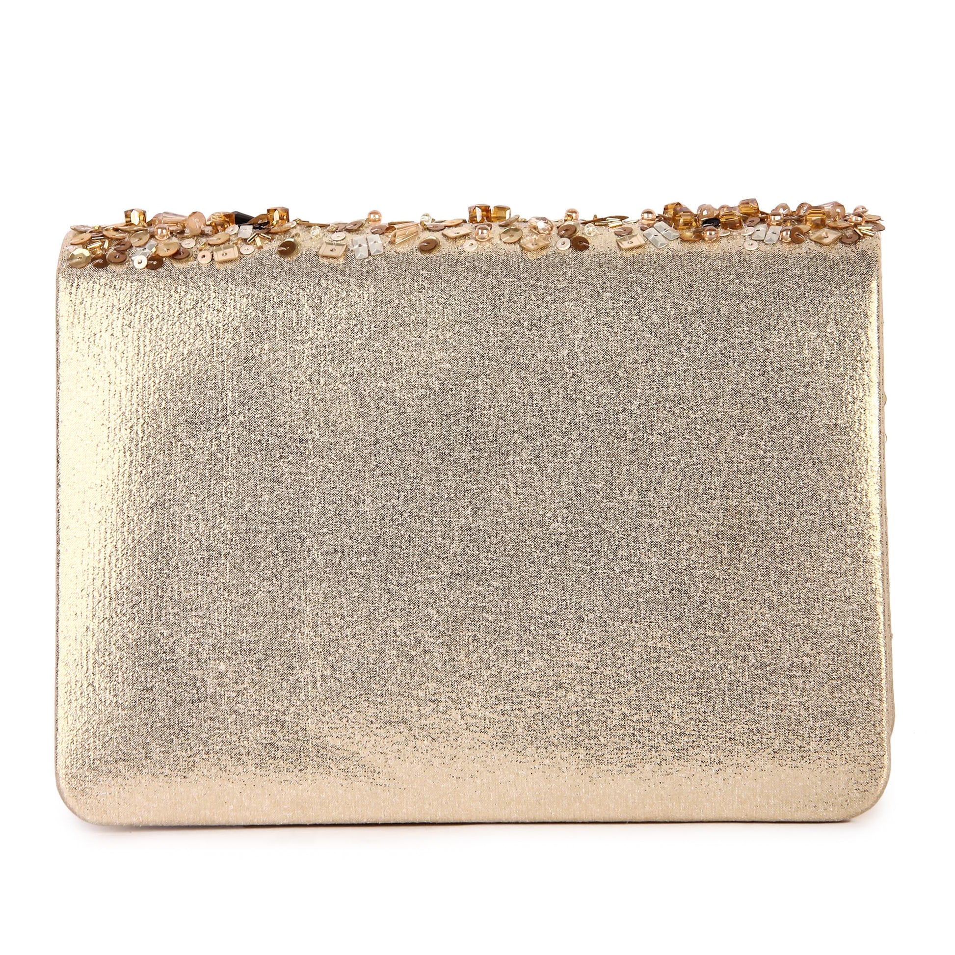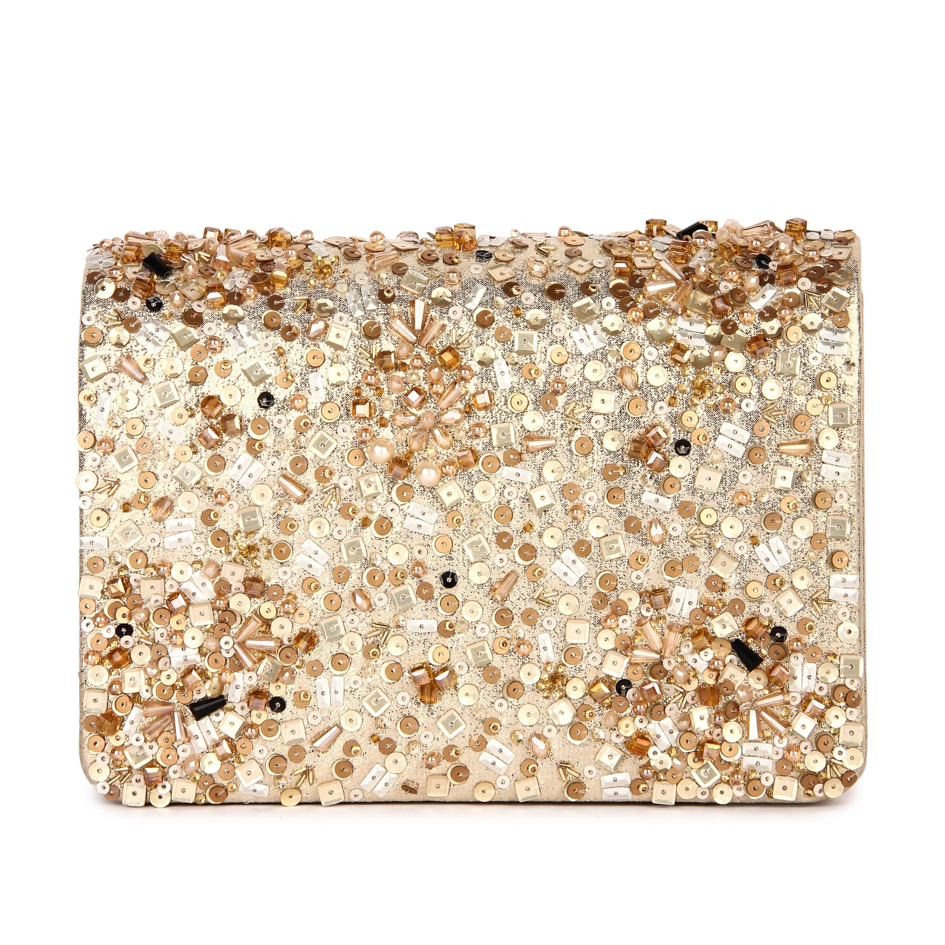 Hand embroidered clutch bag with sling chain. Color - Multicolour