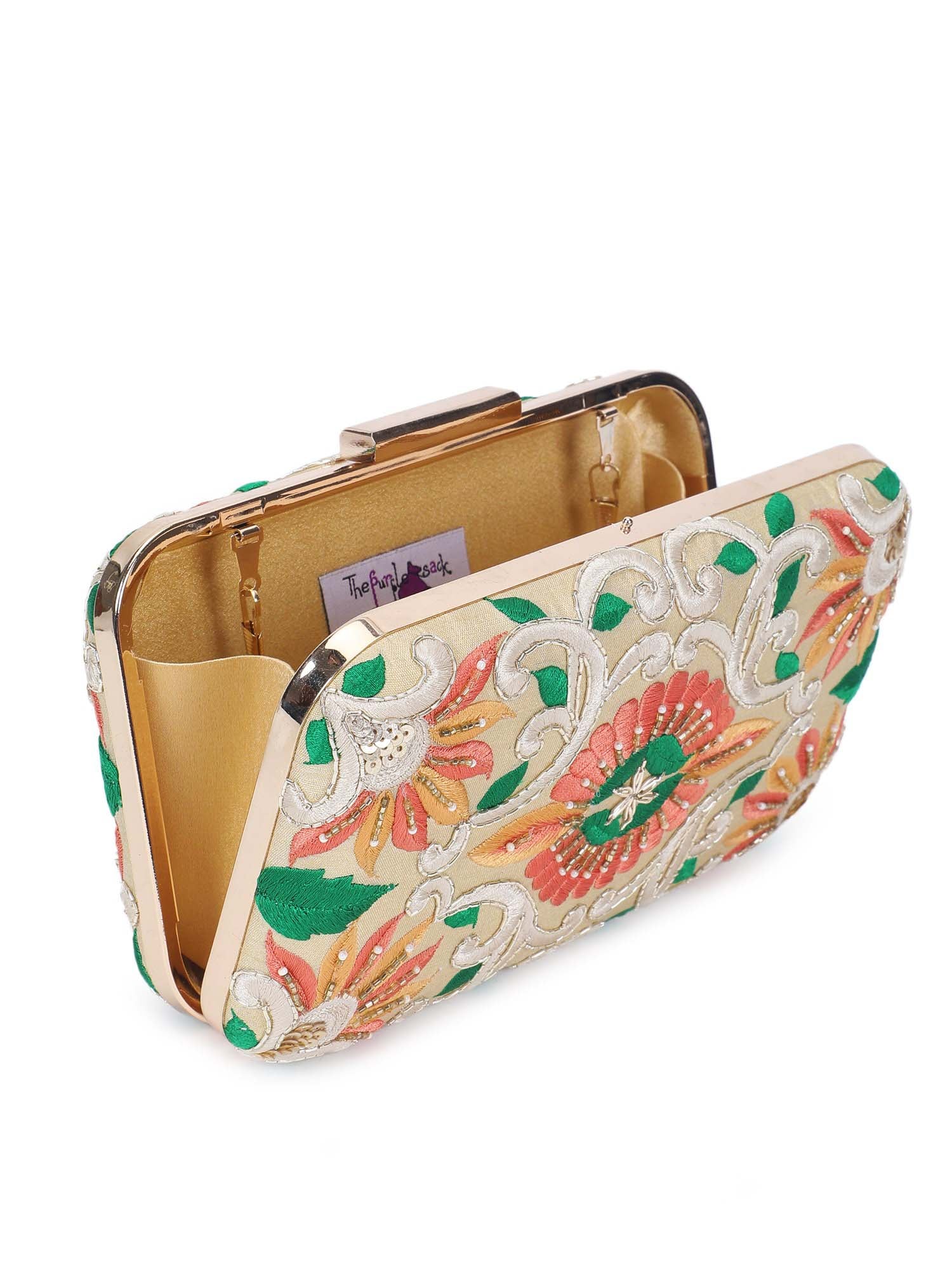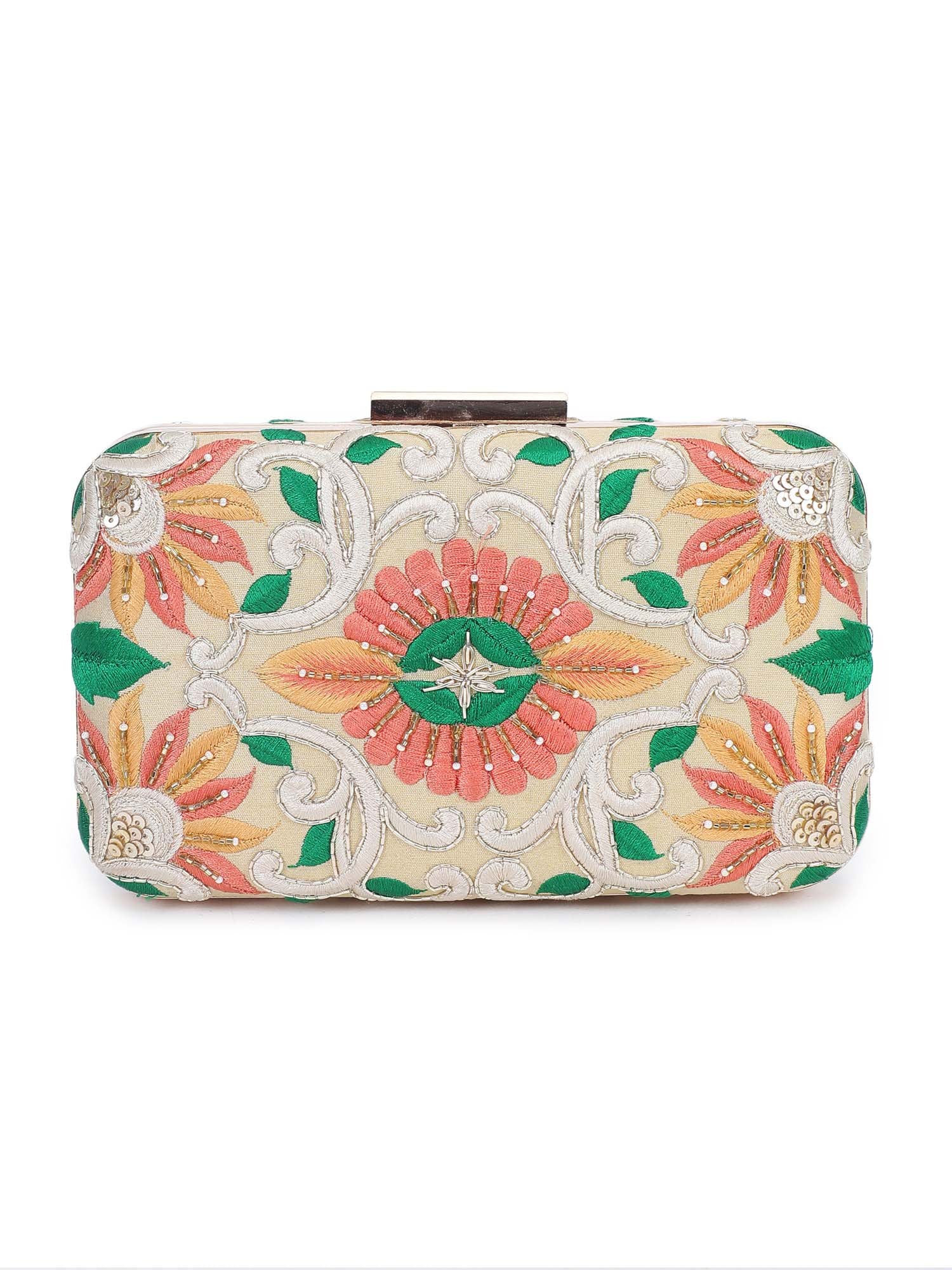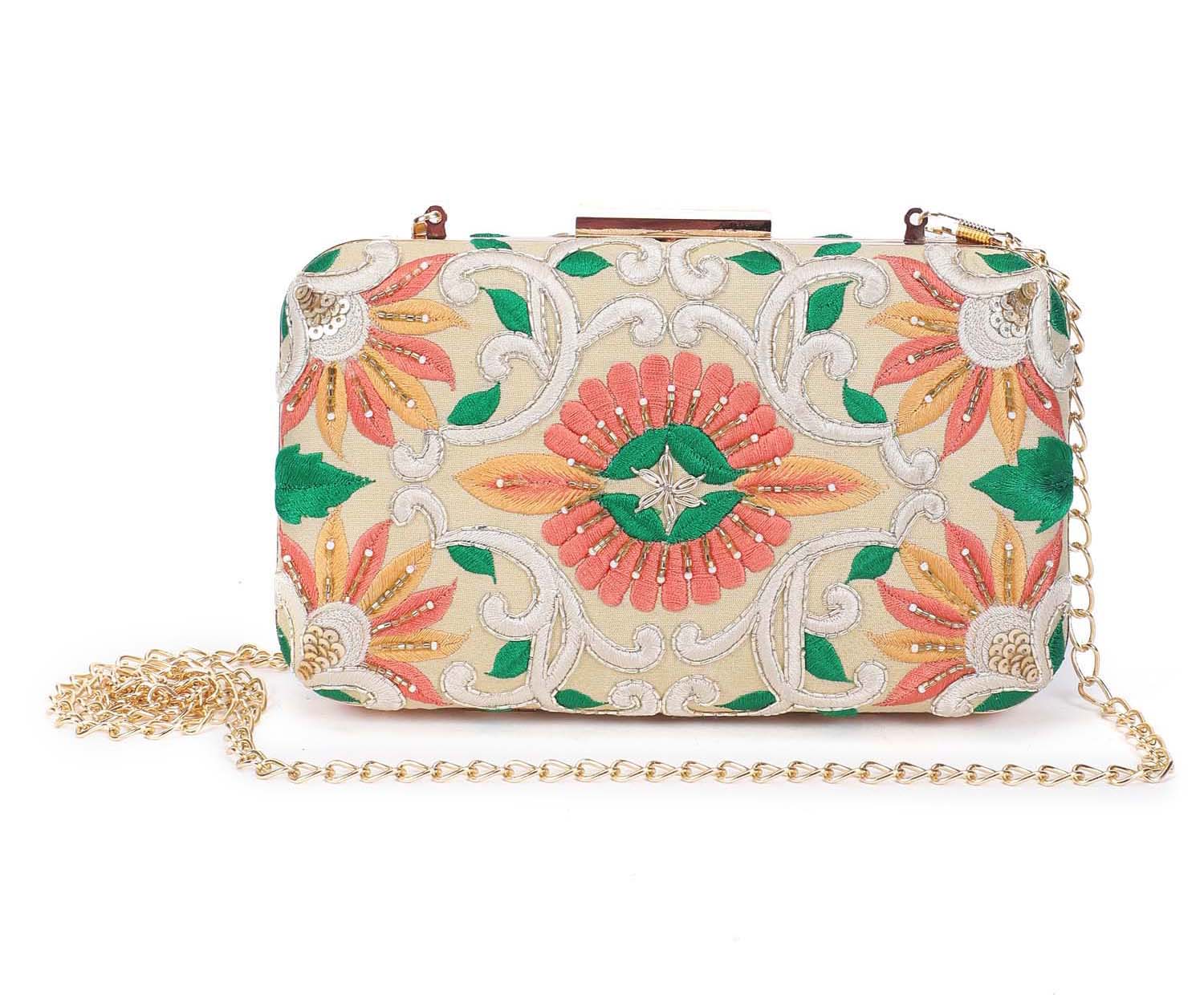 Hand embroidered exquisite clutch with sling. Clutch it or sling it.  Color - Multicolour