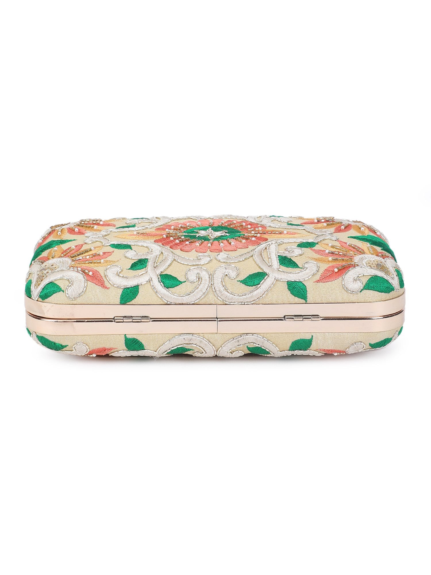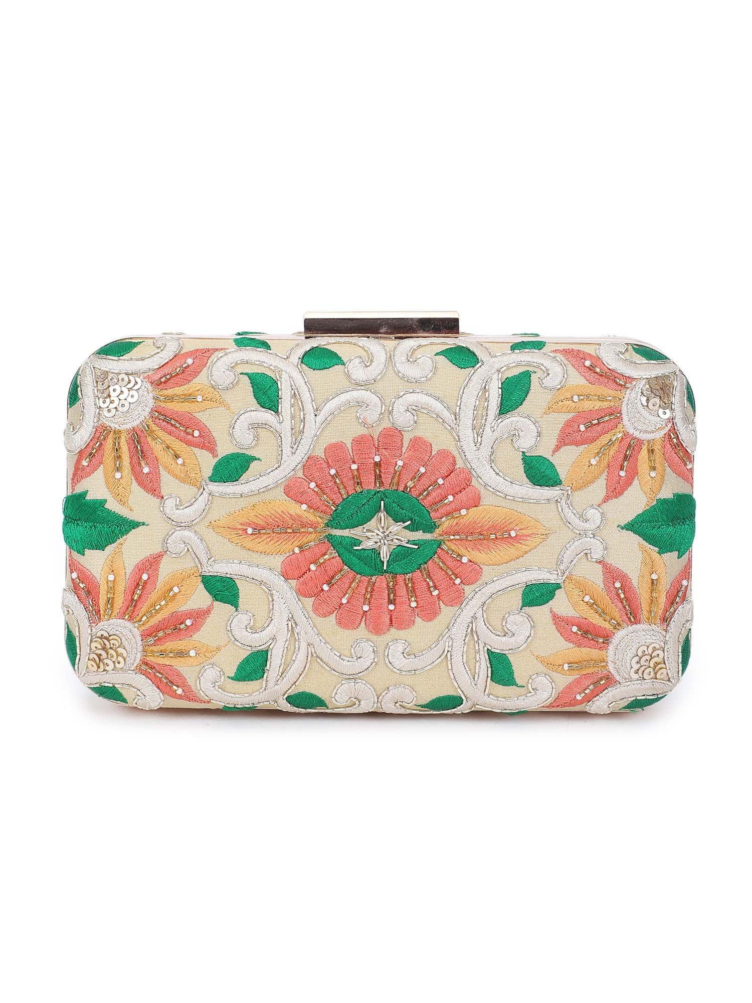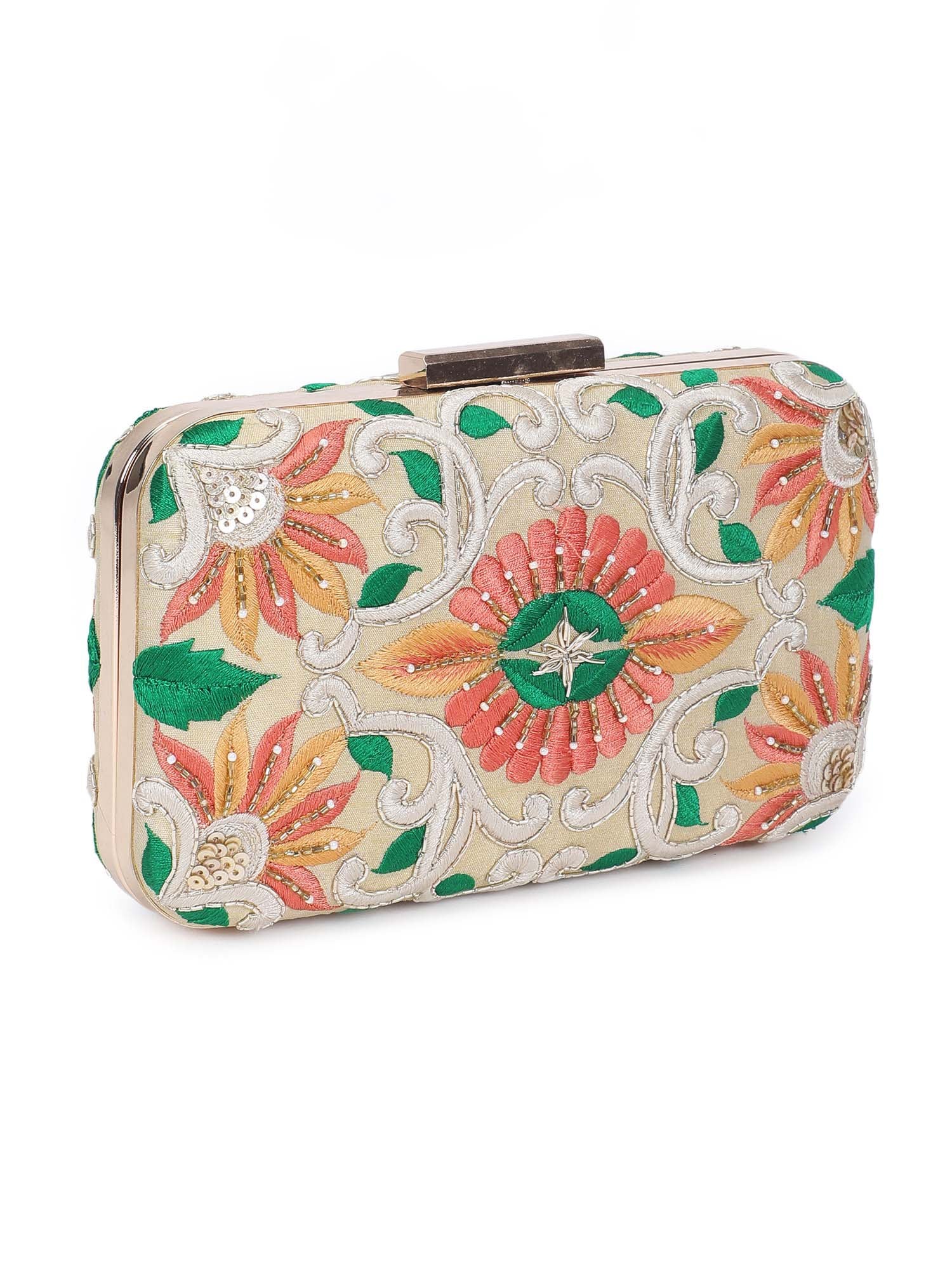 Hand embroidered exquisite clutch with sling. Clutch it or sling it.  Color - Multicolour