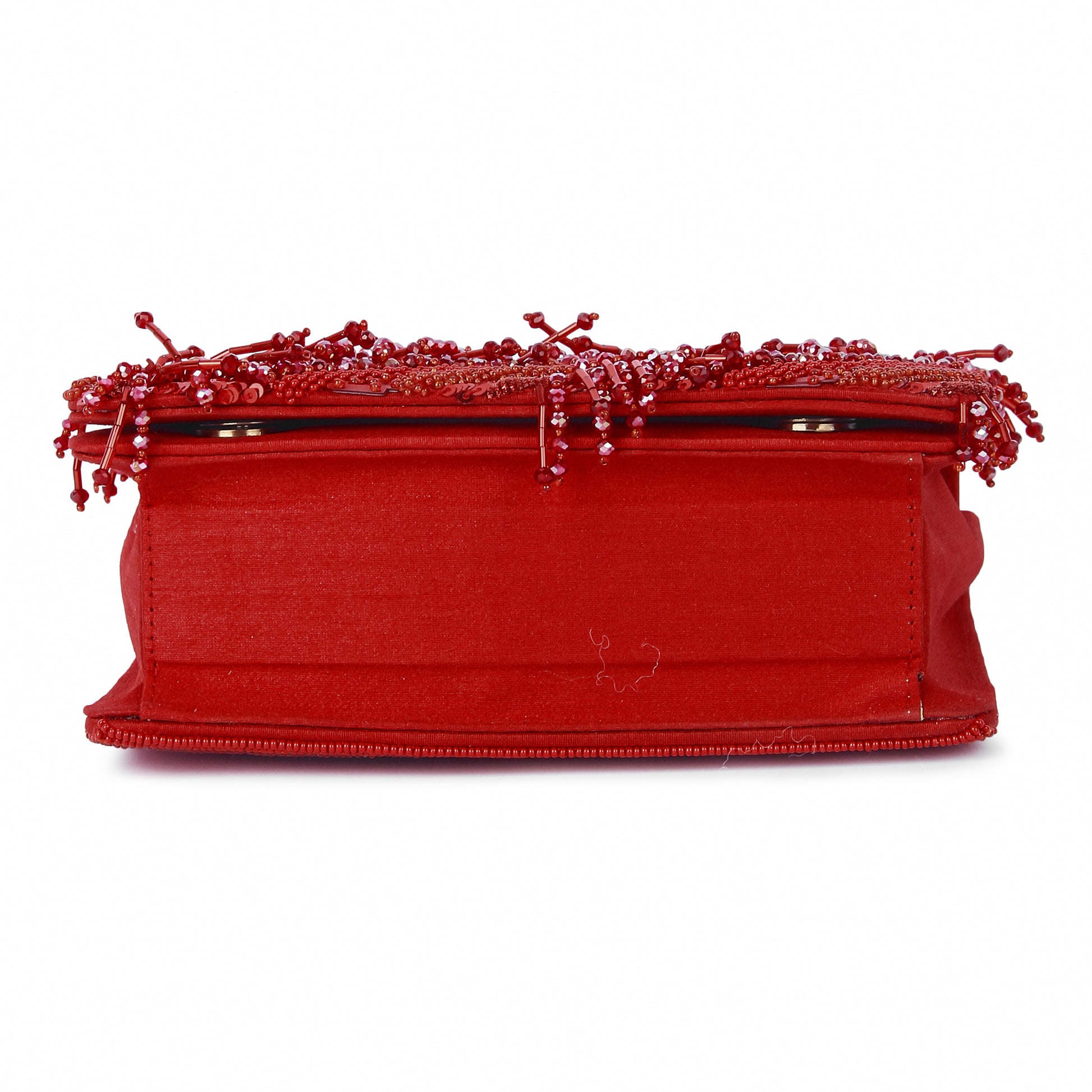 Hand embroidered exquisite clutch with sling. Clutch it or sling it. Color - Red