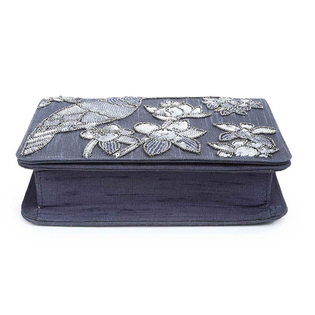 A clutch bag with a toucan designed using sequin. Clutch it or sling it.Color - Grey
