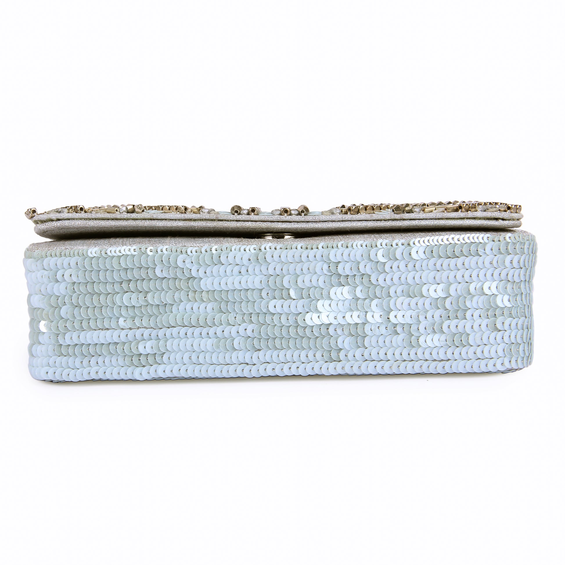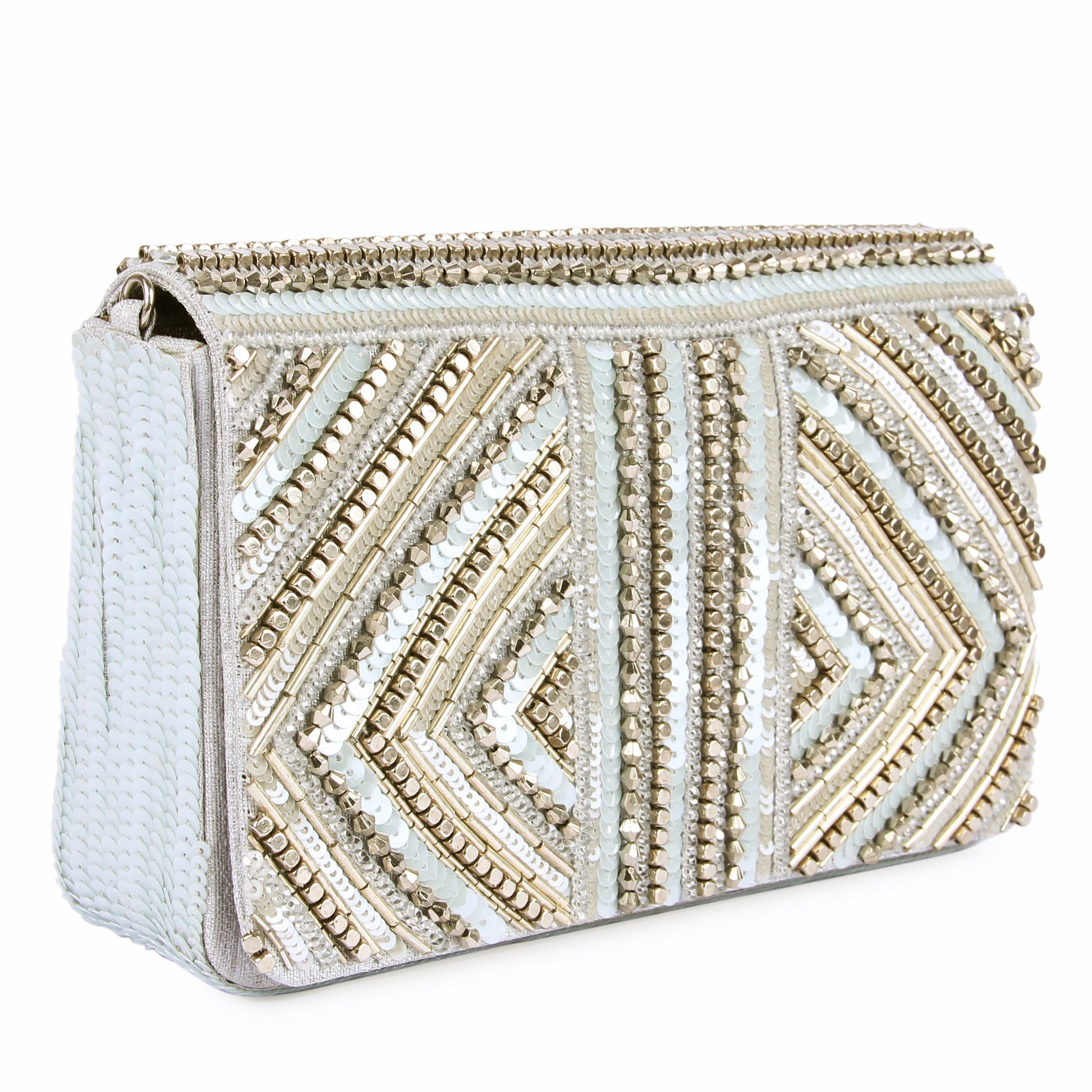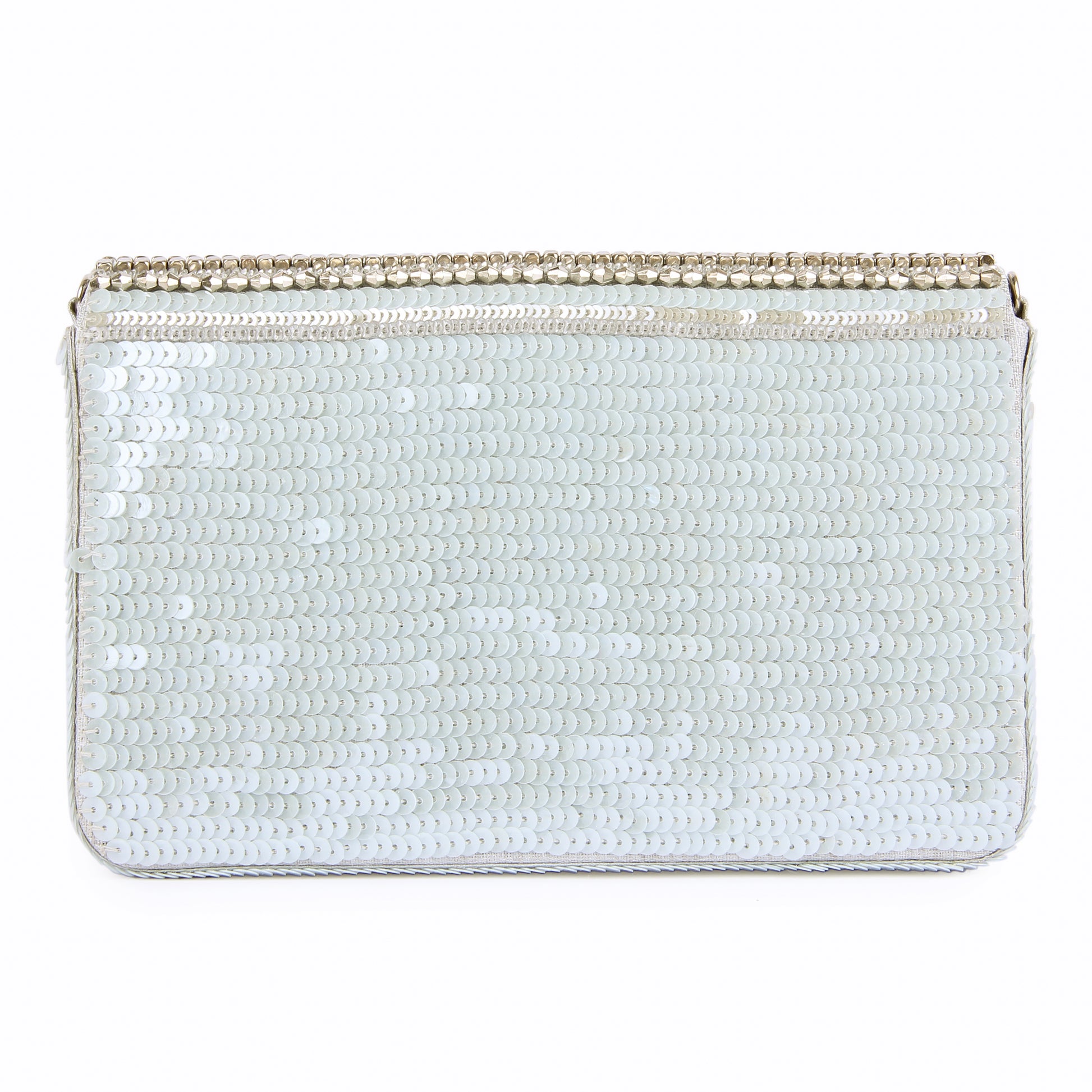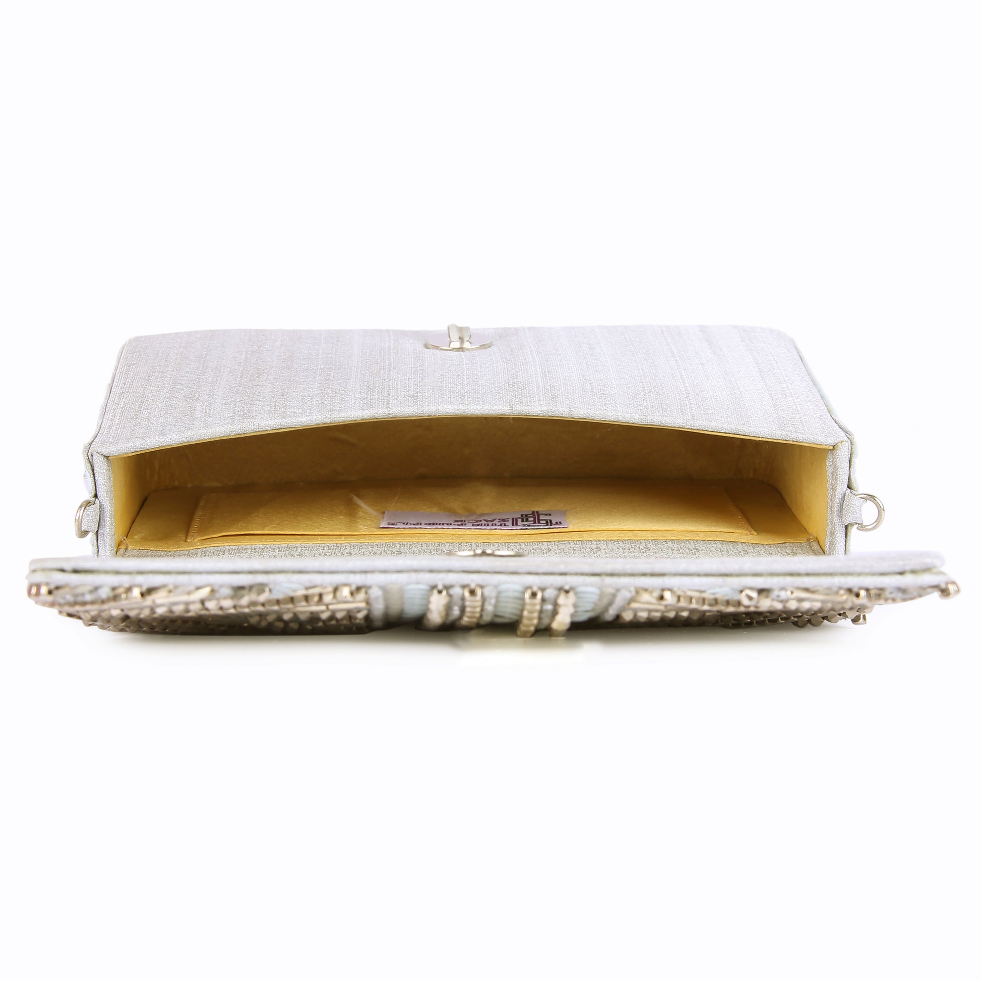 Hand embroidered exquisite clutch with sling. Clutch it or sling it. Color - Silver