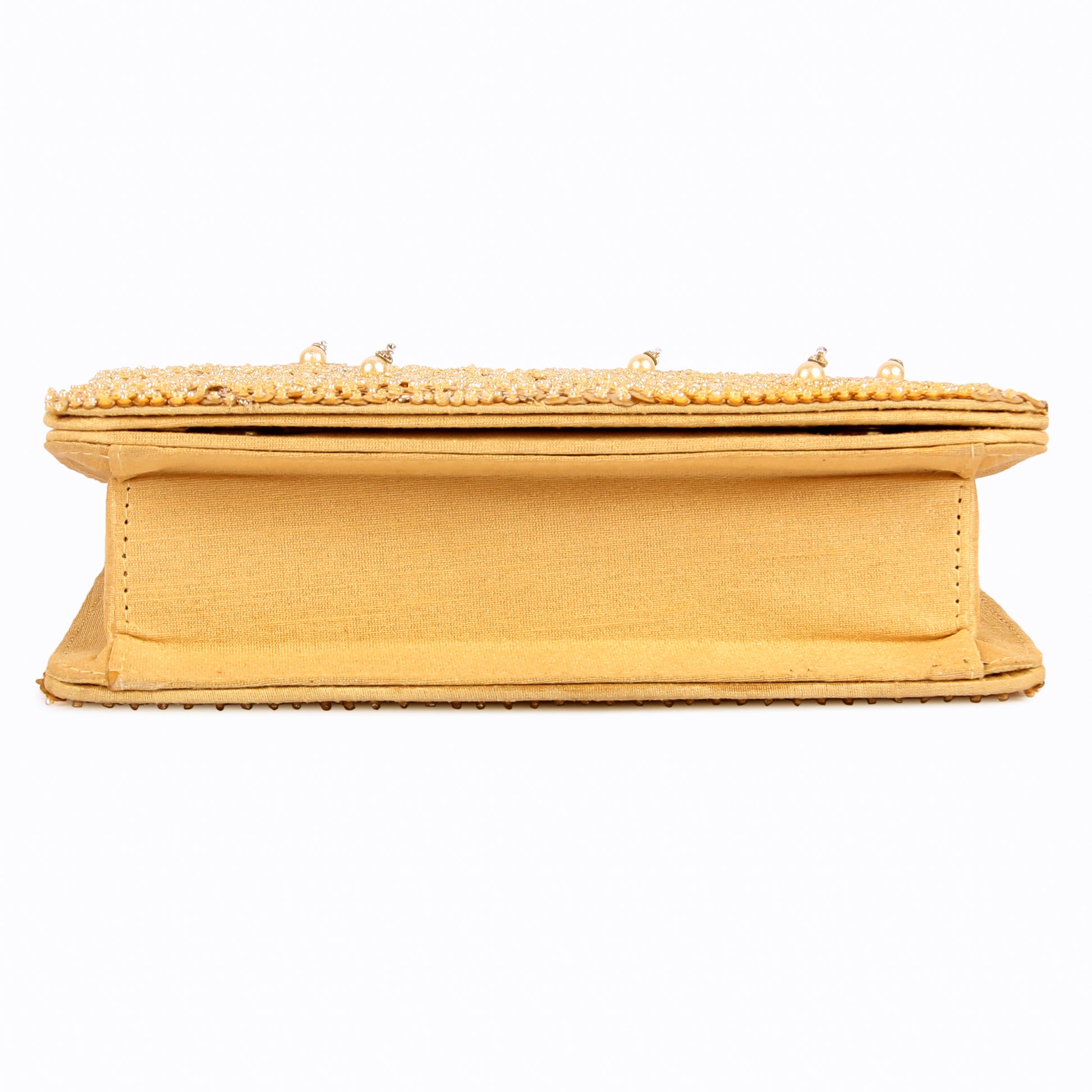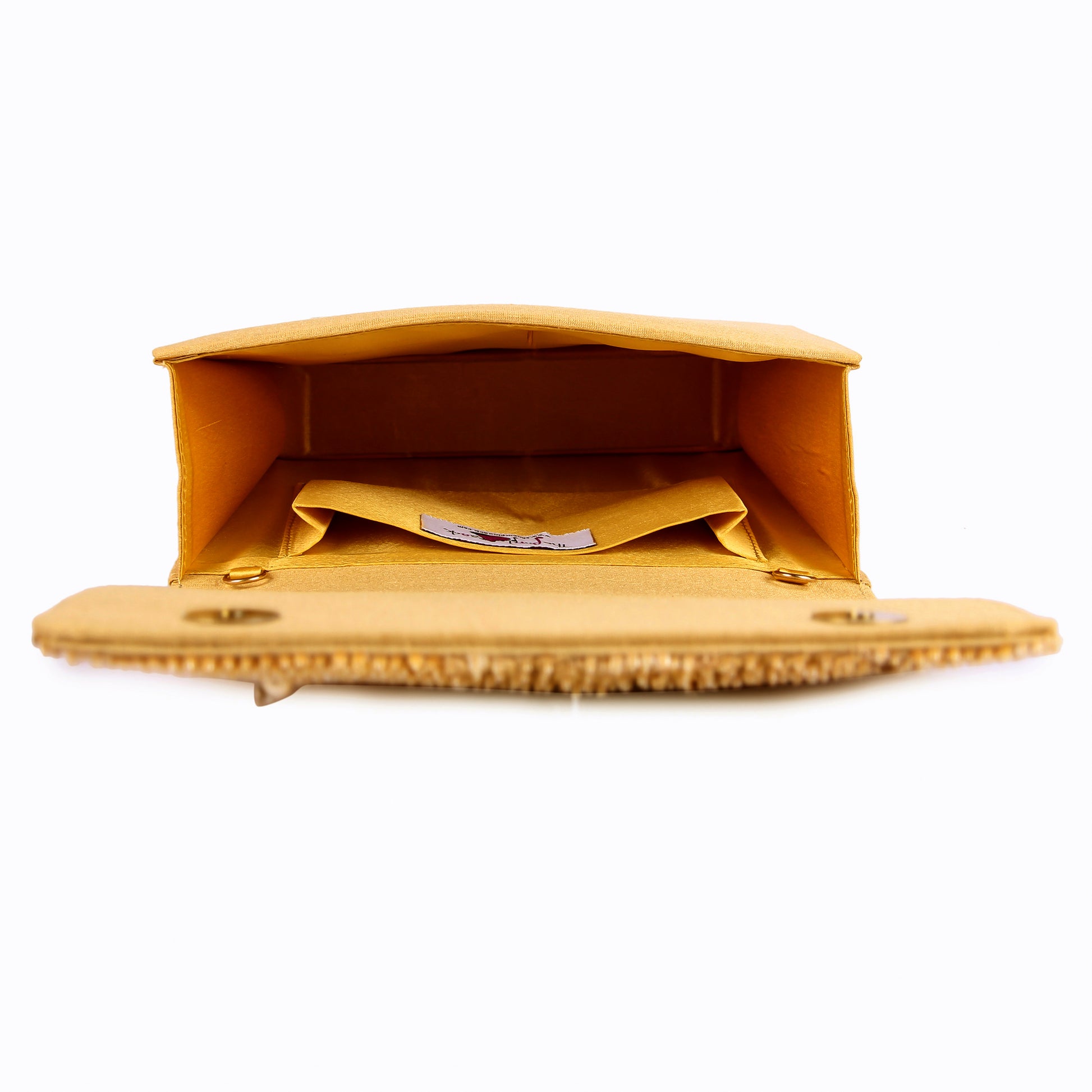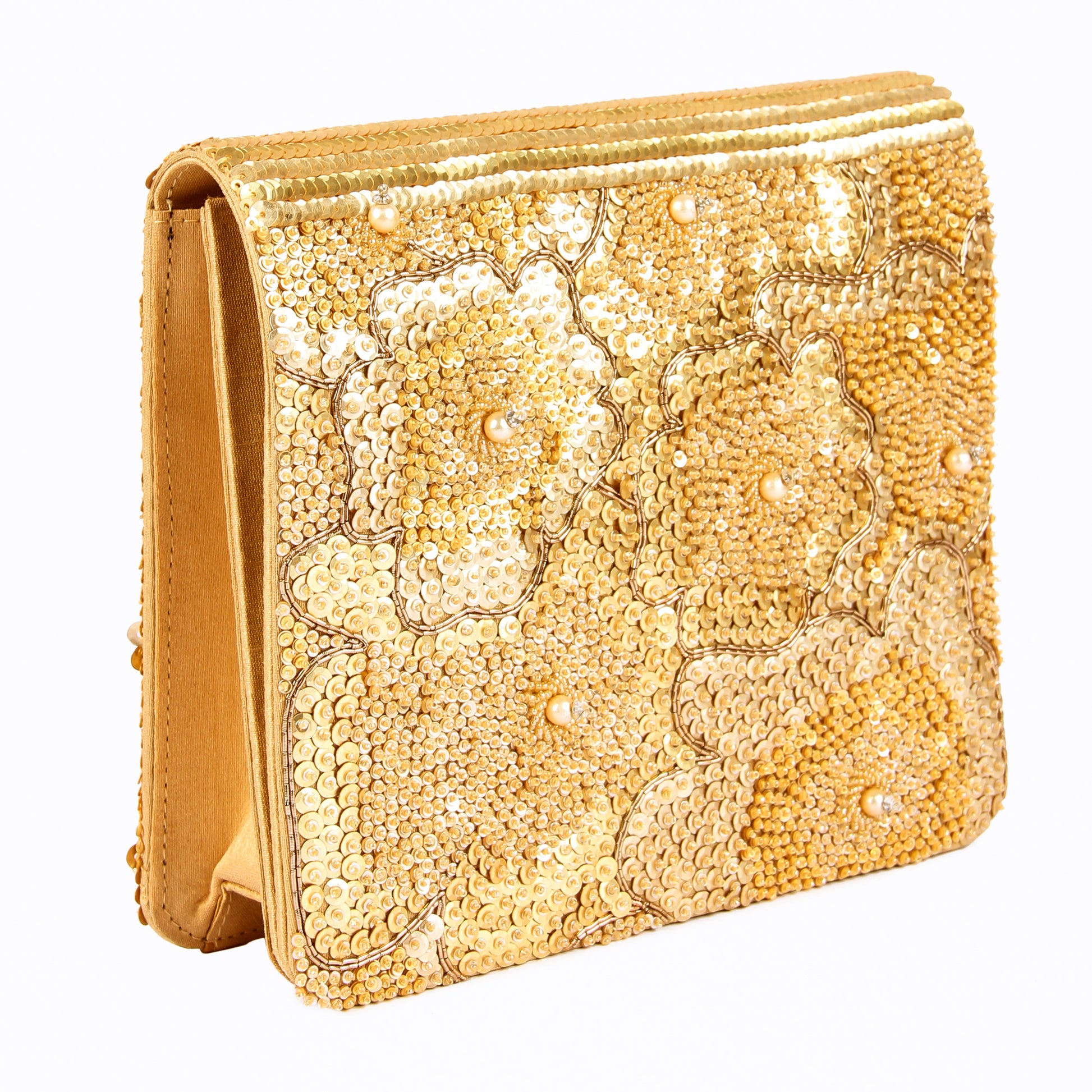 Hand embroidered exquisite clutch with sling. Clutch it or sling it. Color - Golden