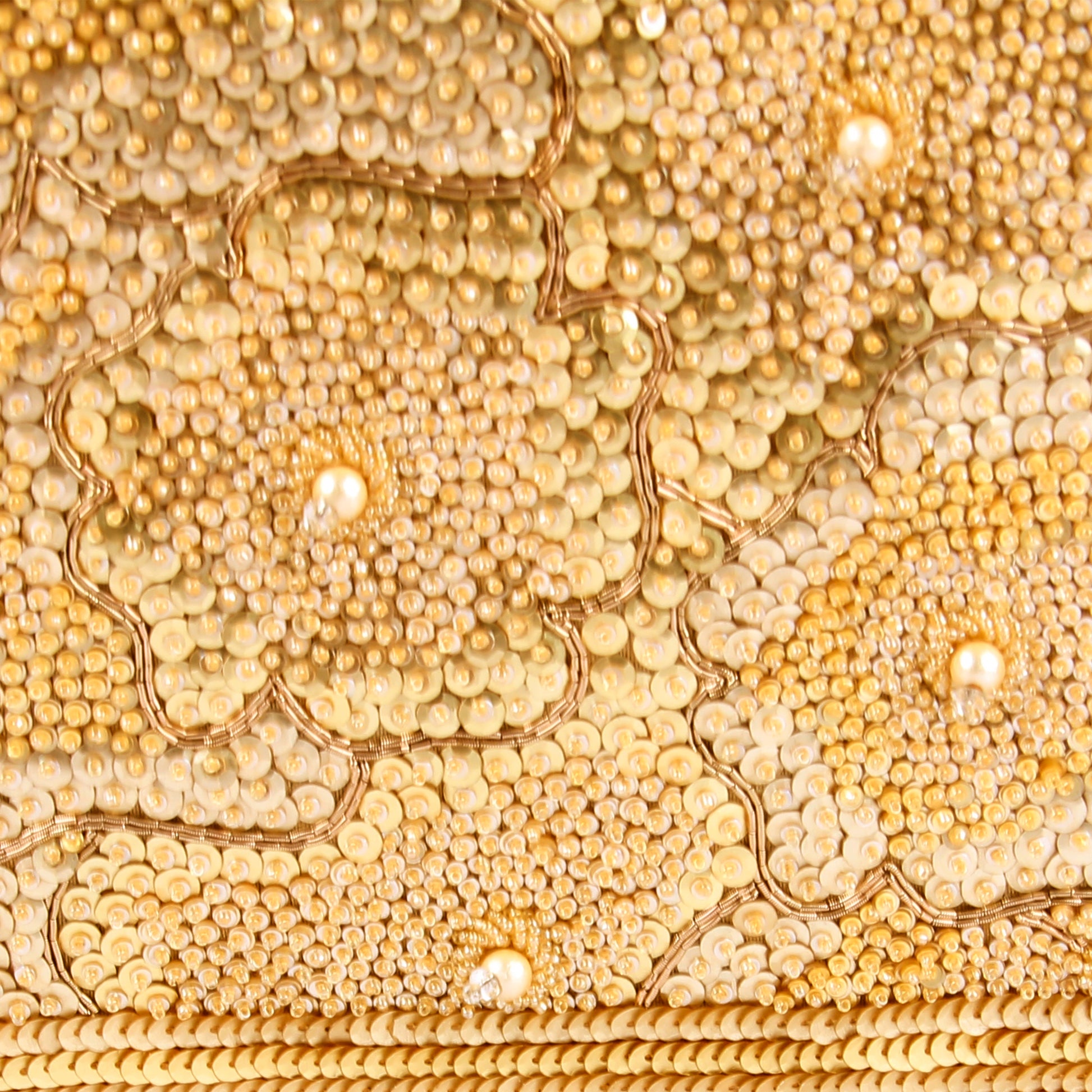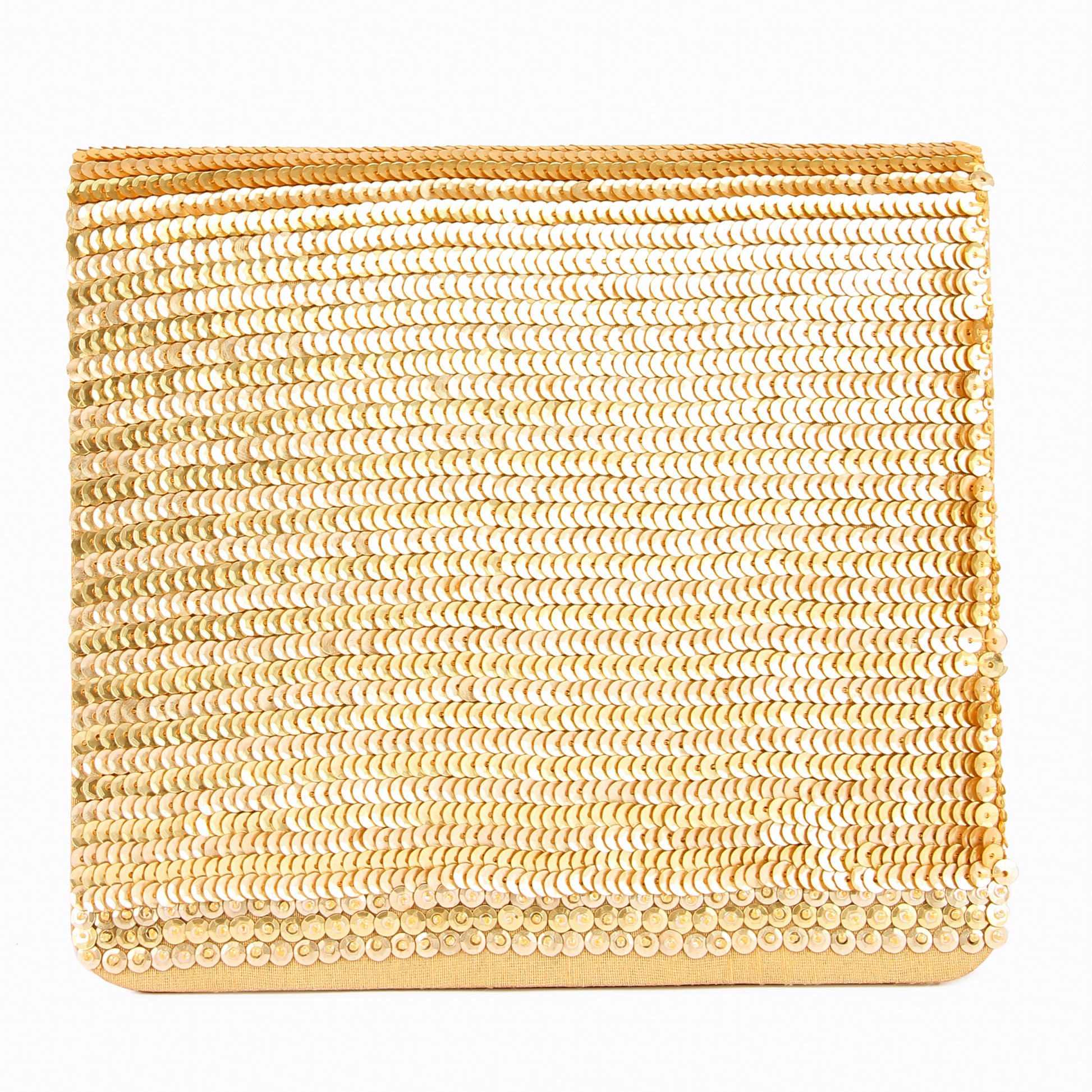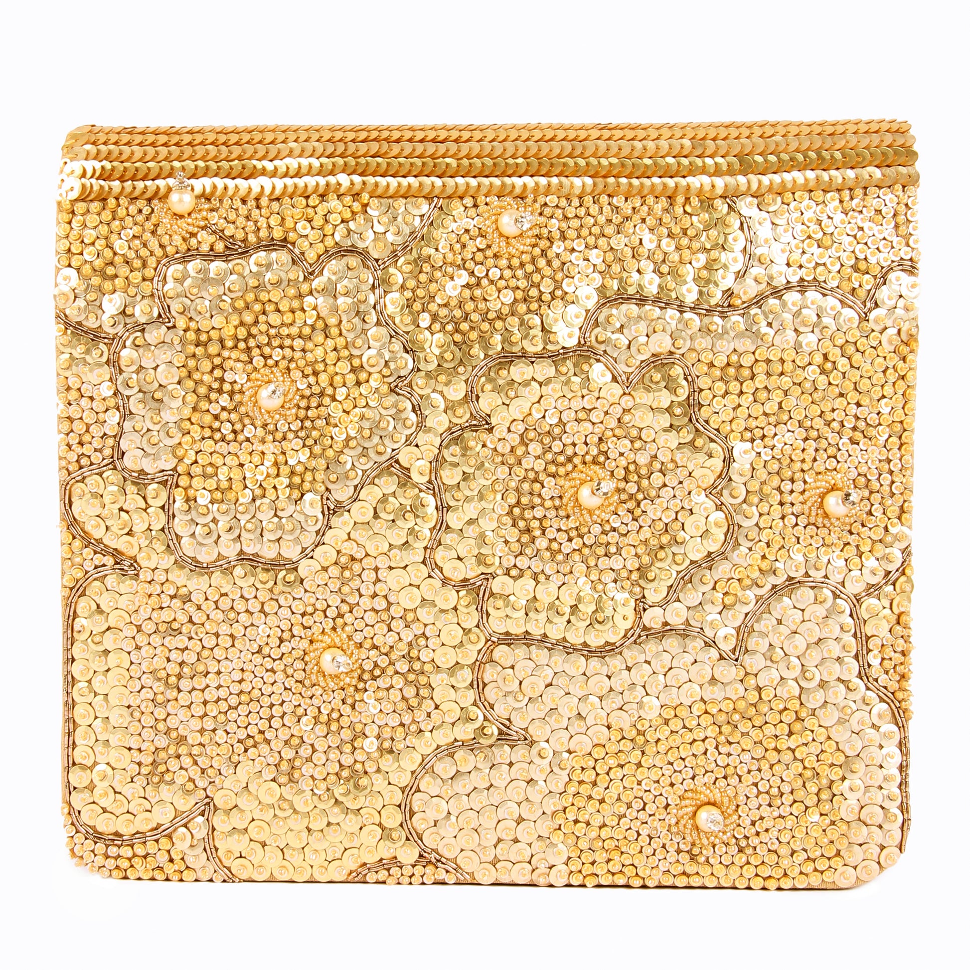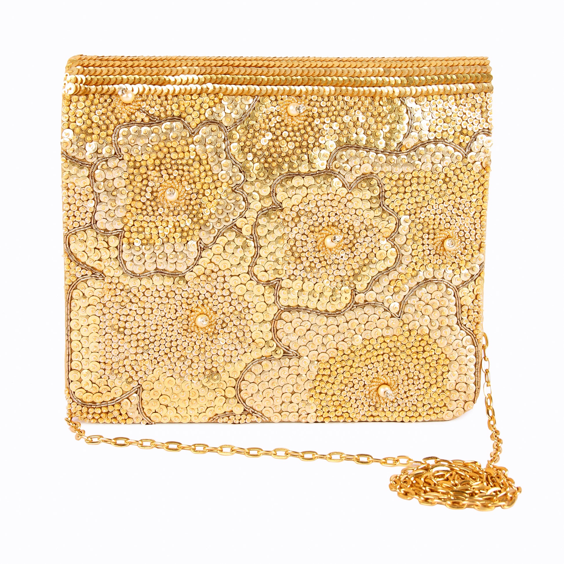 Hand embroidered exquisite clutch with sling. Clutch it or sling it. Color - Golden