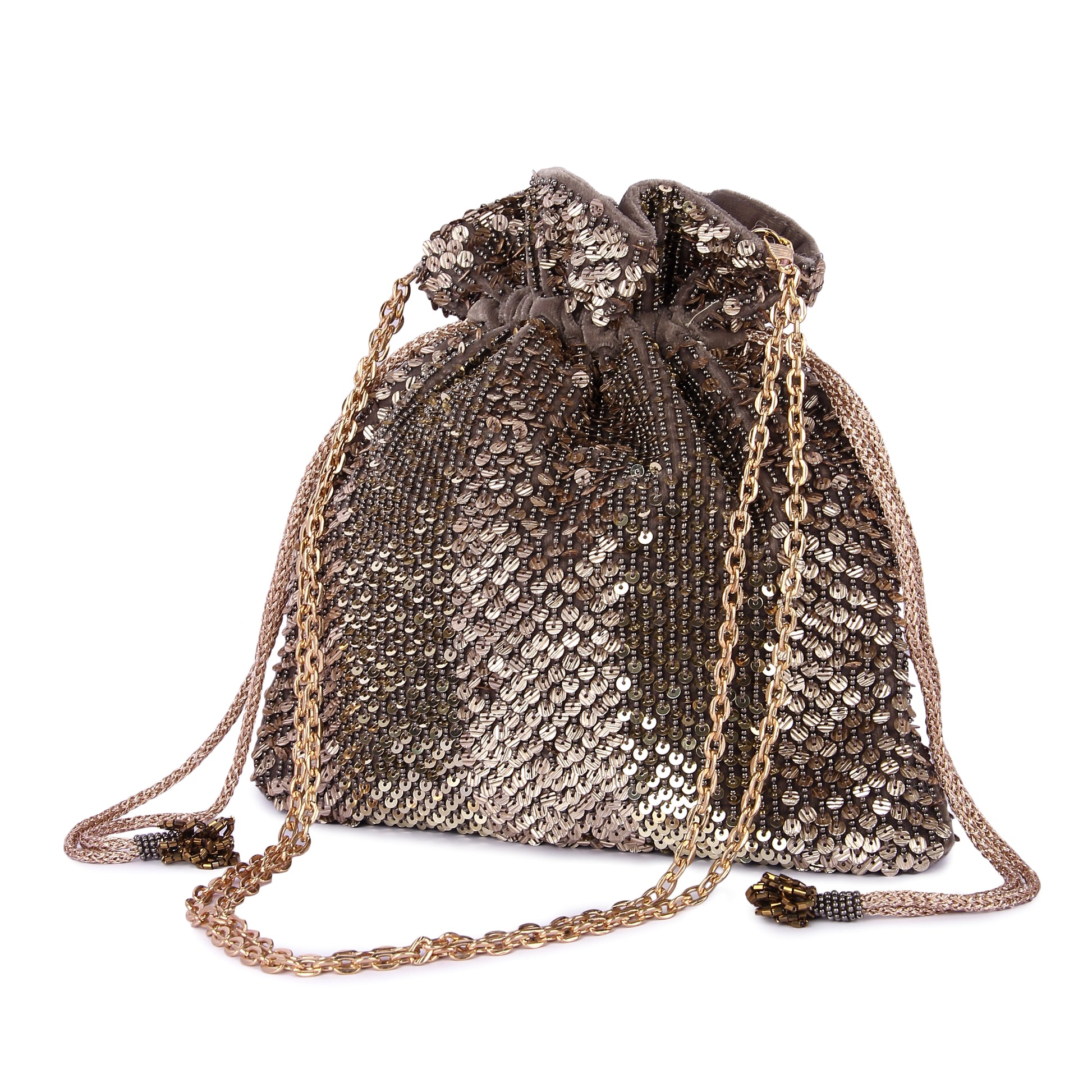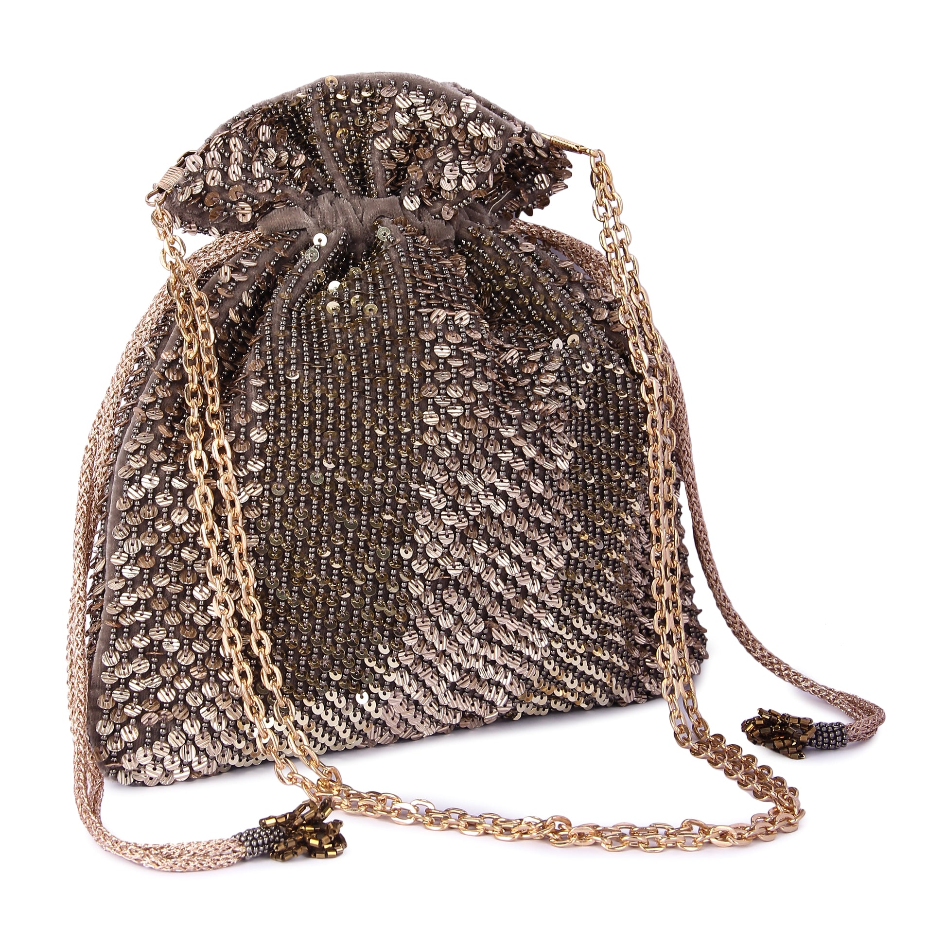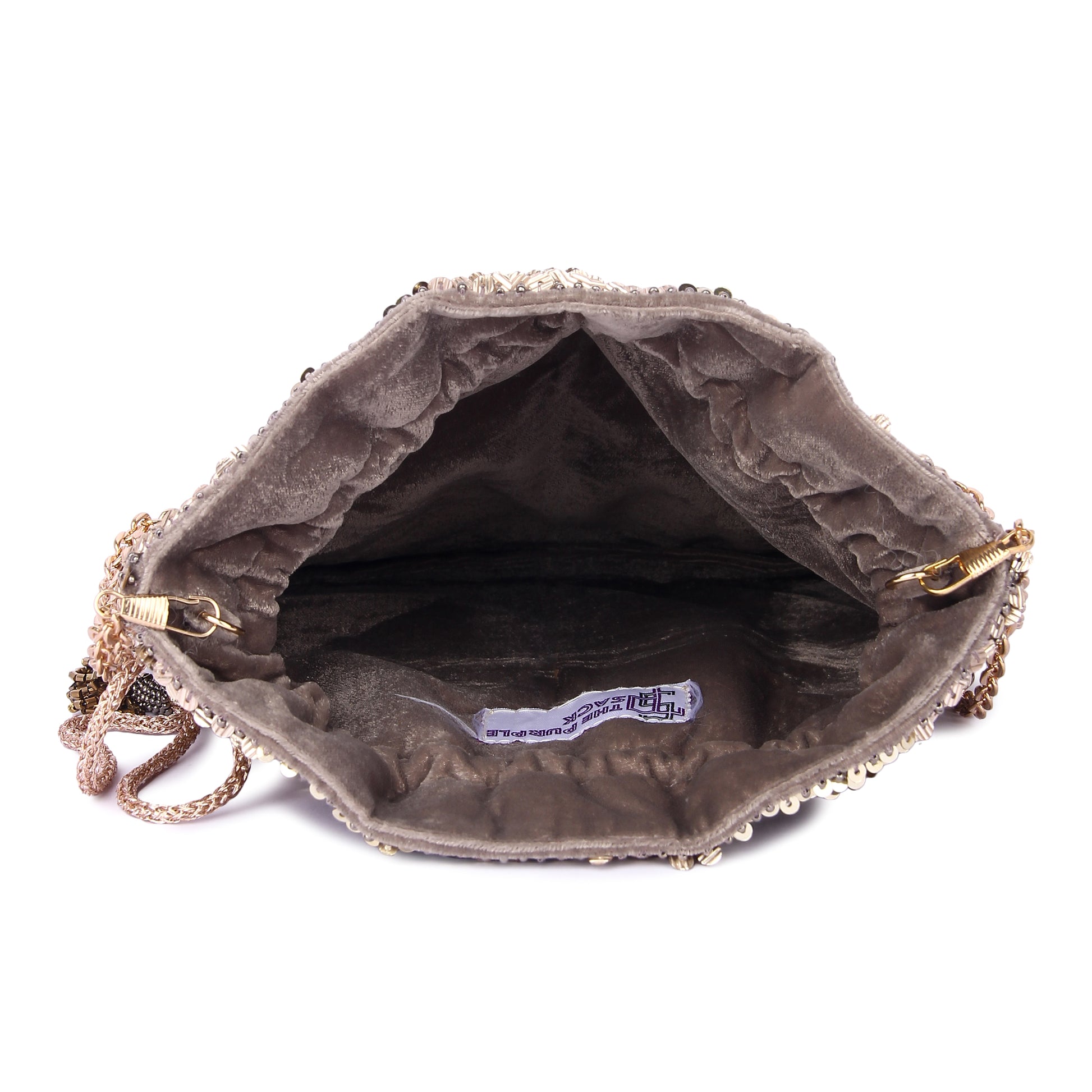 This clutch bag  has an exuberant design and comes with a detachable sling chain. Carry it with the chain or simply clutch it.                                                    Color - Multicolour
