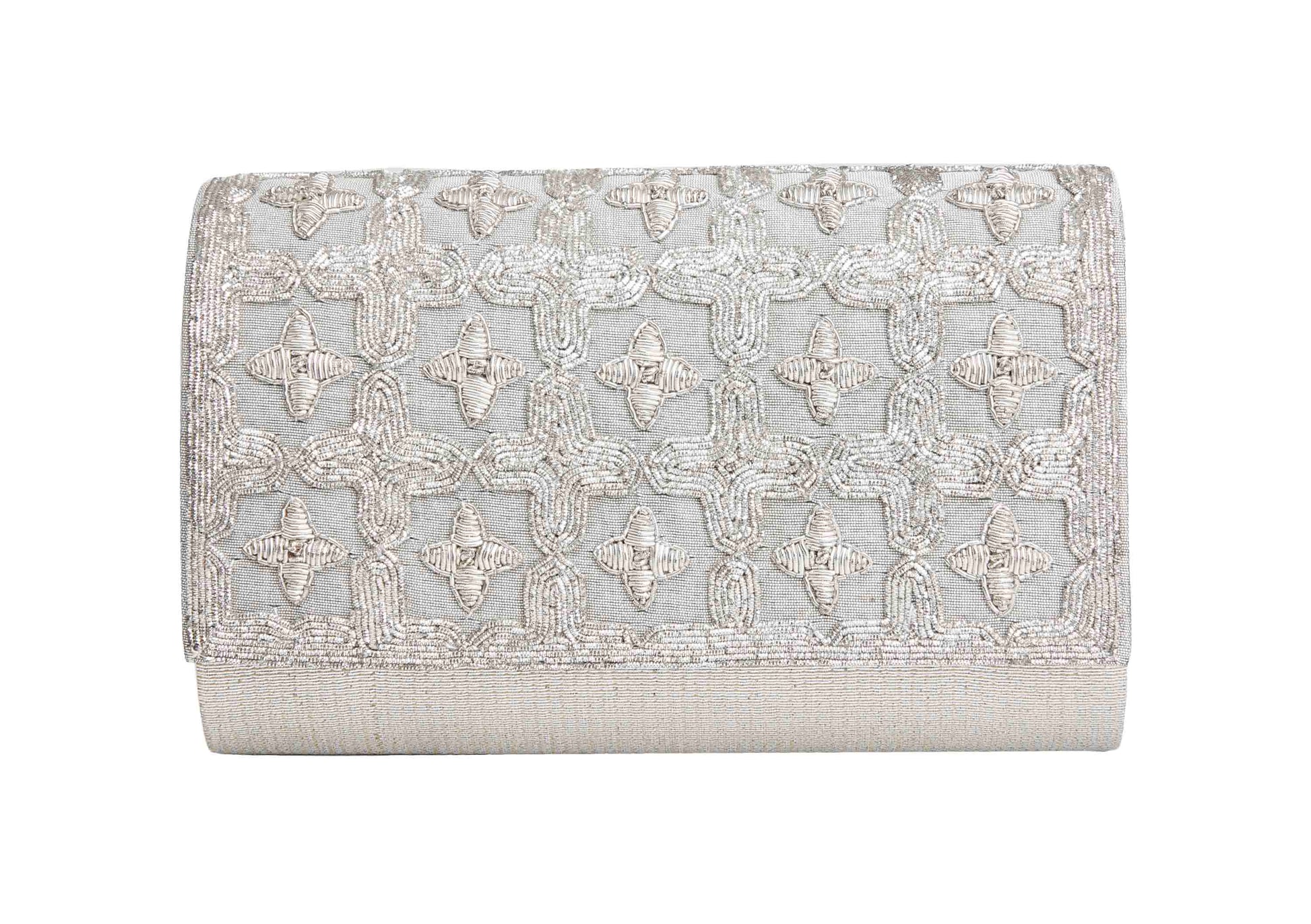 A silver clutch is a must have in one's closet, so grab this one before its sold. Color - Silver grey