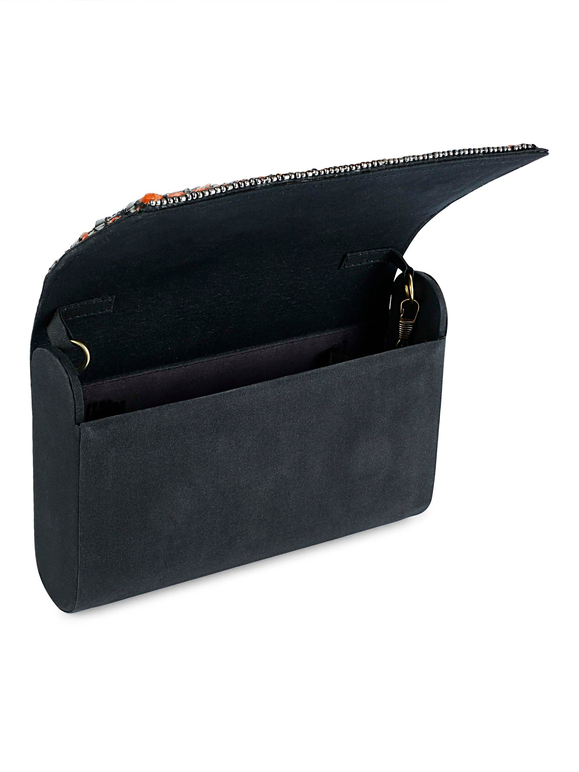 A clutch bag with an eccentric design on the flap, this one is a must have. A clutch bag that comes with a sling chain. Color - Multicolour