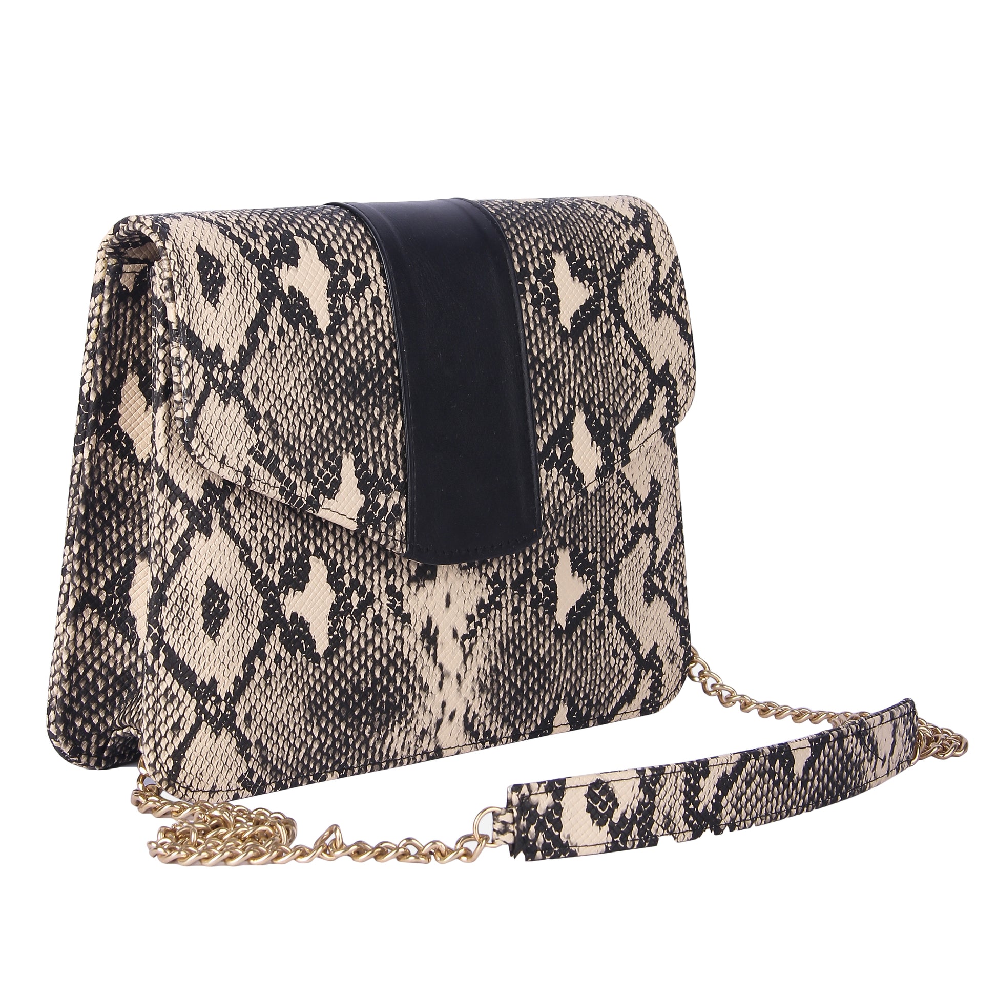 This clutch bag has an exuberant design and comes with a detachable sling chain. Carry it with the chain or simply clutch it. Color - Multicolour
