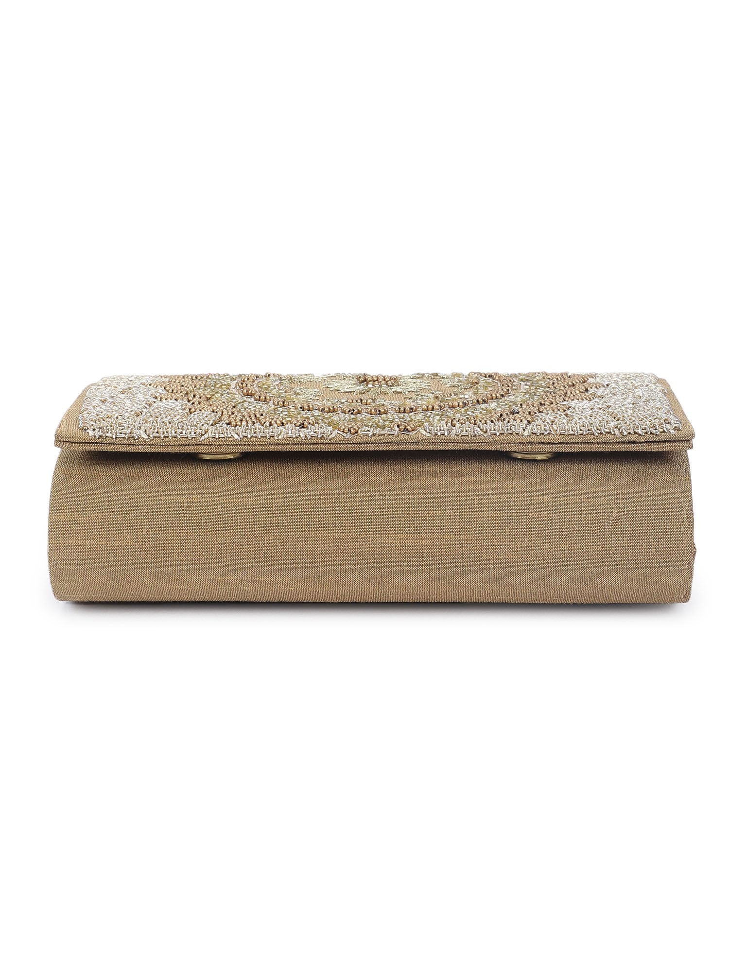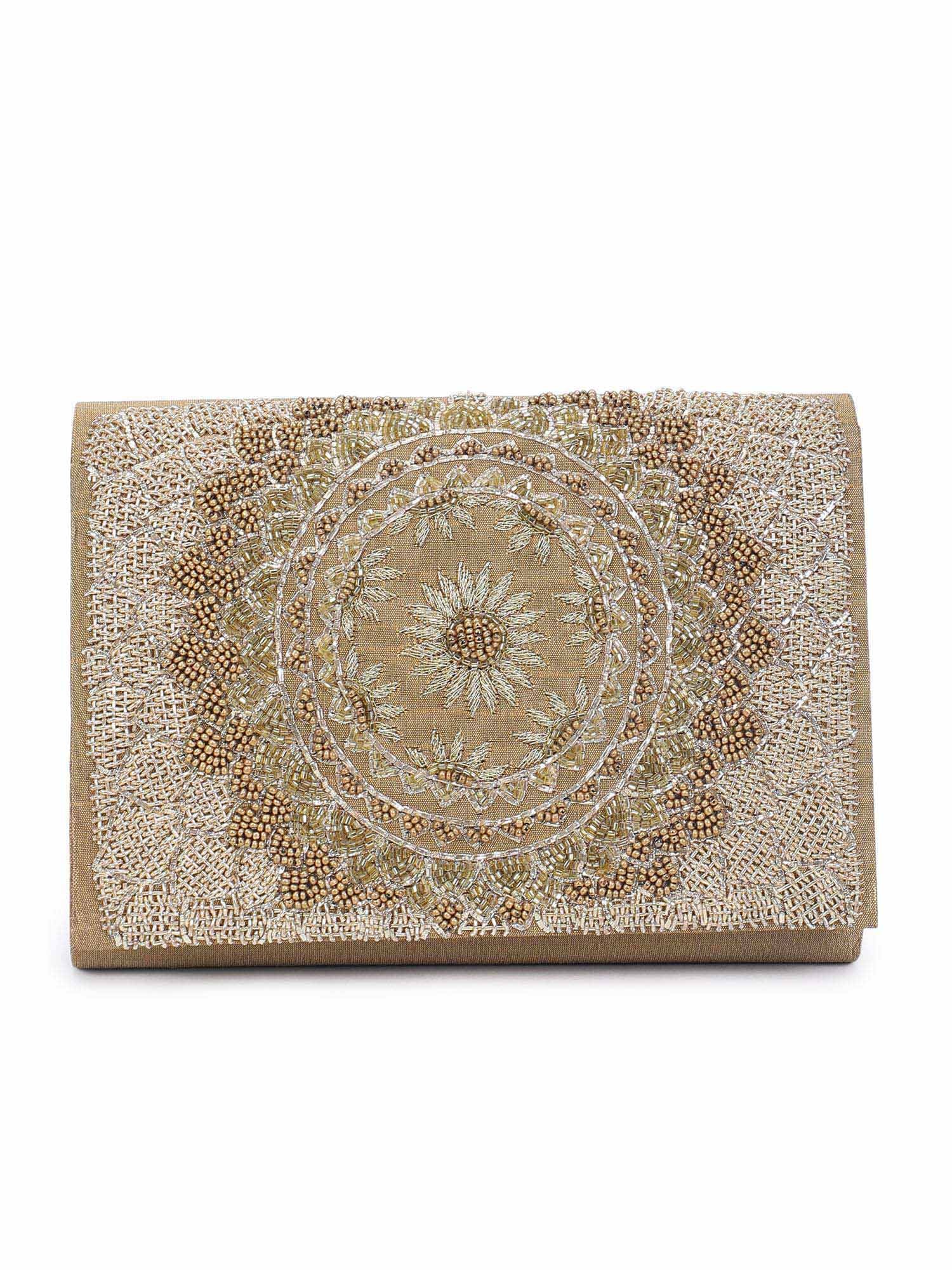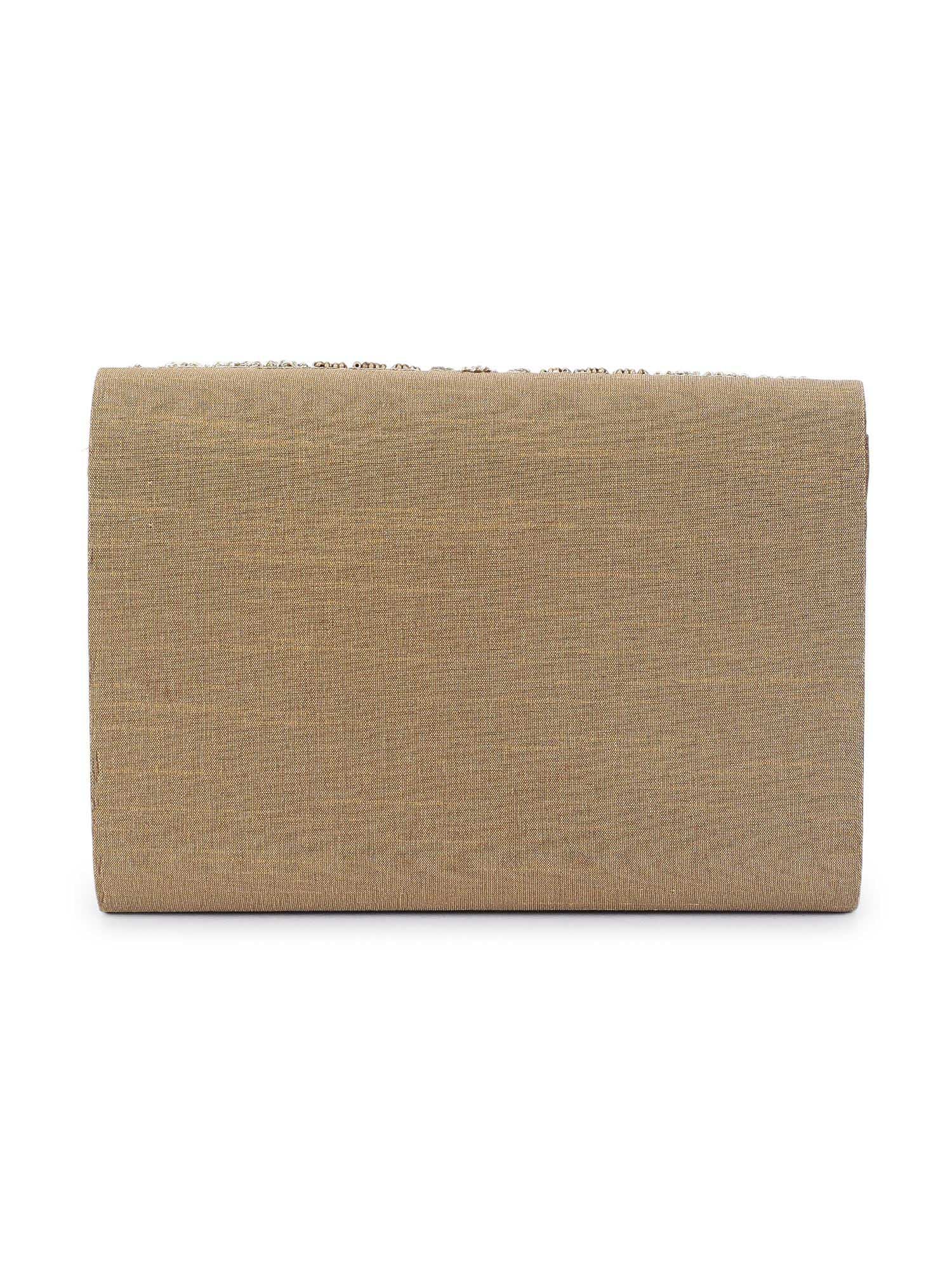 A clutch bag with a simplistic and subtle bag design. Comes with a sling chain. Color - Golden