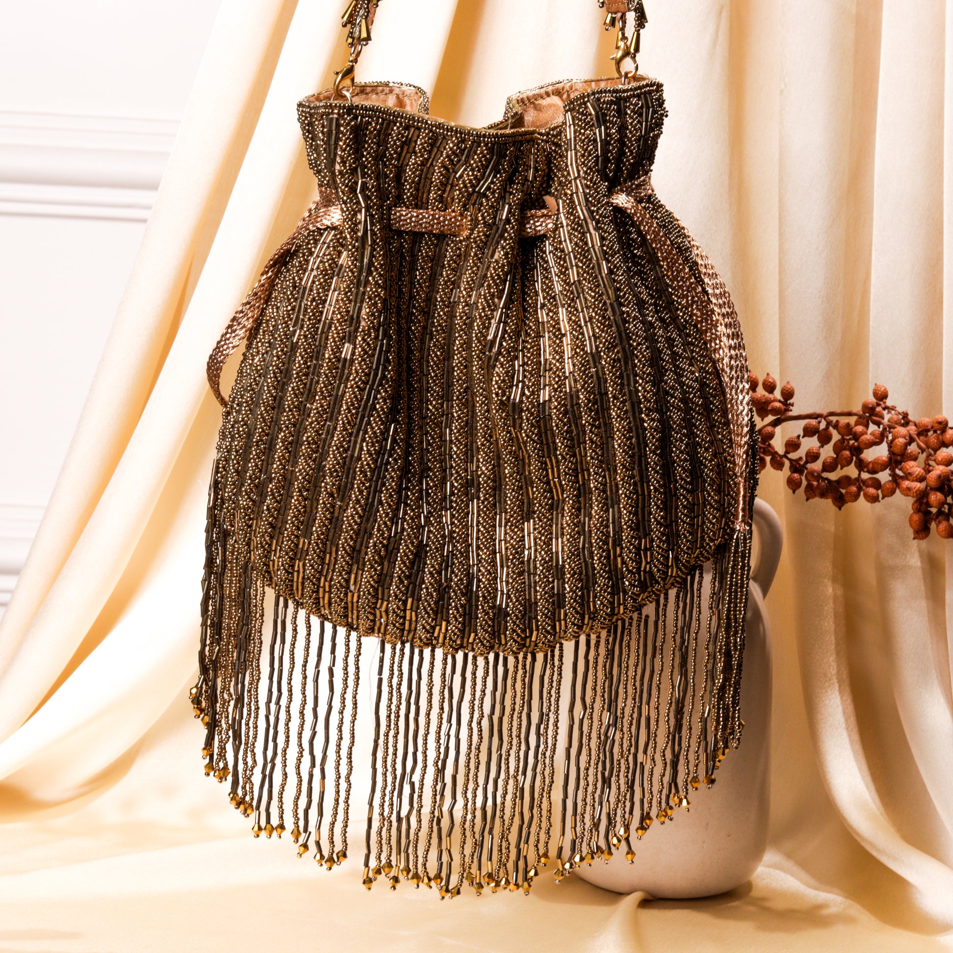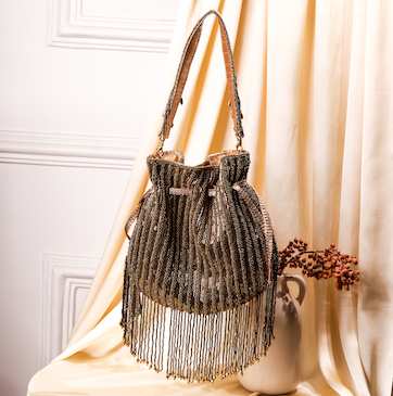Hand embroidered potli bag with a detachable handle, which when paired with your outfit completes it.